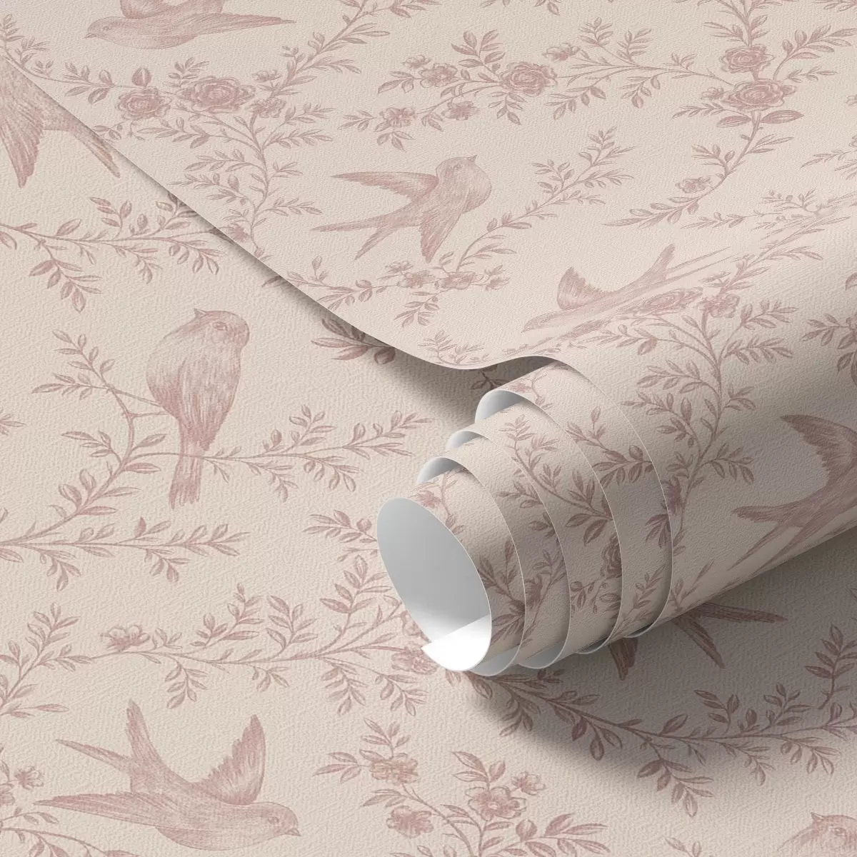 Ταπετσαρία Πουλιά και τριαντάφυλλα, vintage μοτίβο σε ροζ χρώμα Nr. a00587