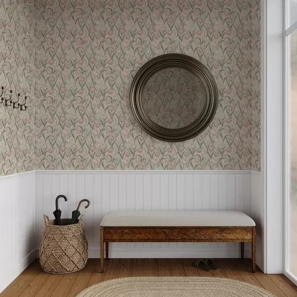 Ταπετσαρία Απαλά ροζ τουλίπες σε απαλό μπεζ φόντο Nr. a00589