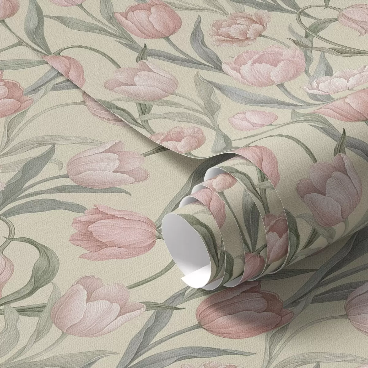 Ταπετσαρία Απαλά ροζ τουλίπες σε απαλό μπεζ φόντο Nr. a00589