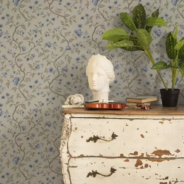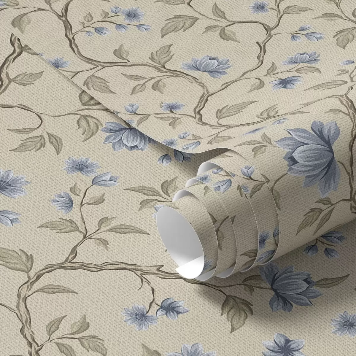Ταπετσαρία Μπλε ανθισμένα κλαδιά σε λινό μπεζ φόντο Nr. a00590