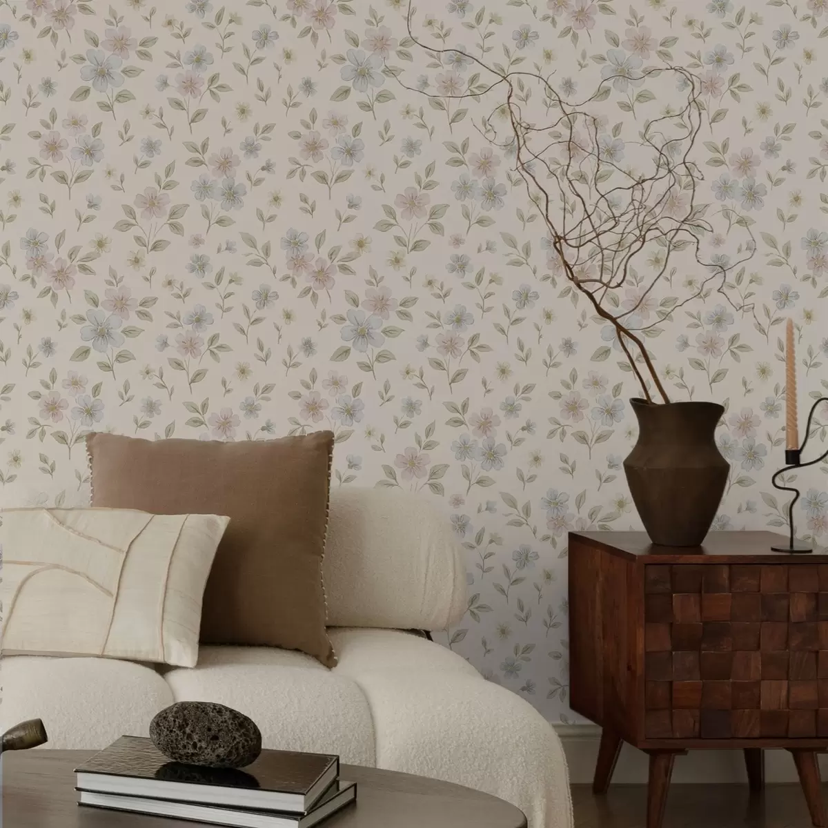 Ταπετσαρία Παστέλ λουλούδια λιβαδιού σε κρεμ φόντο Nr. a00596