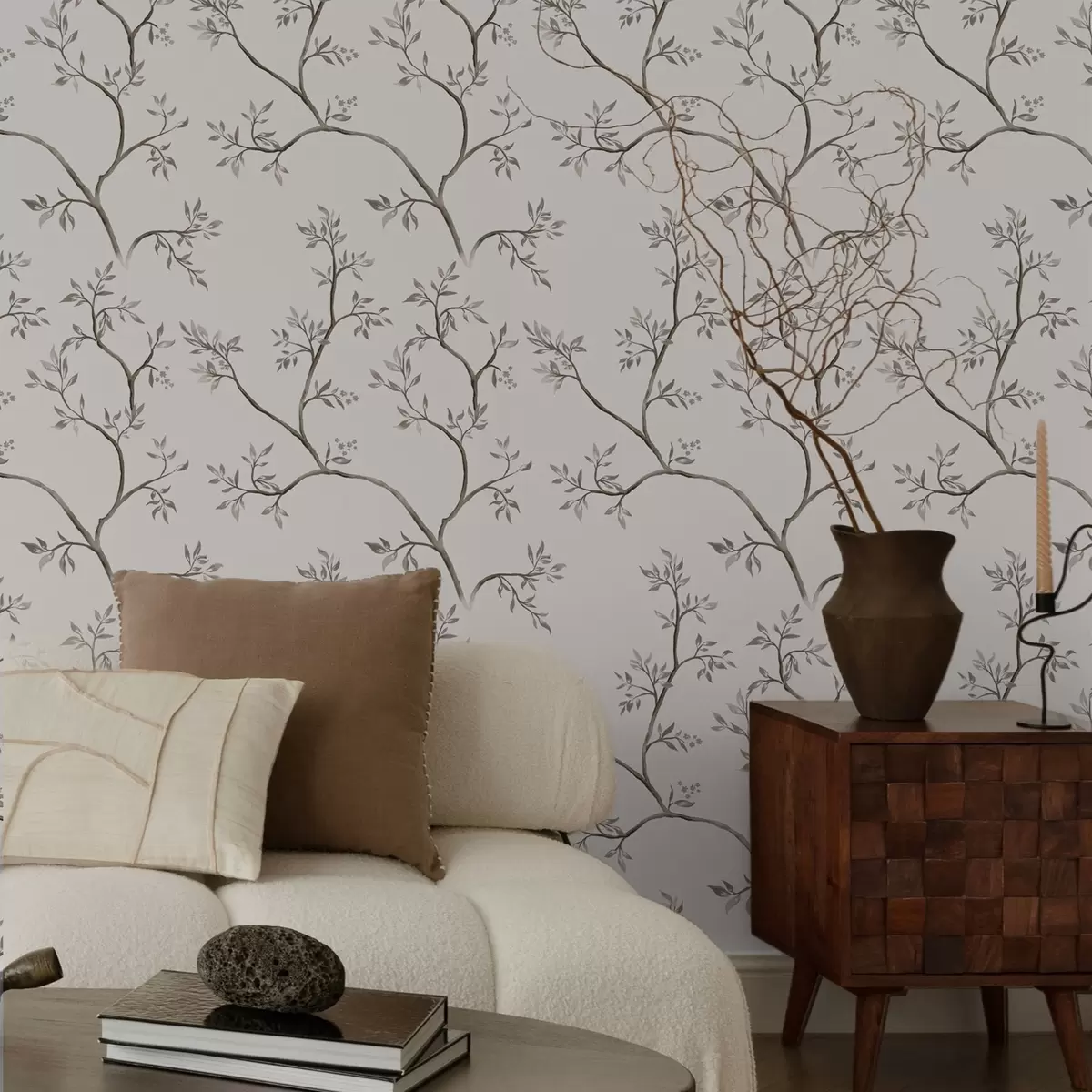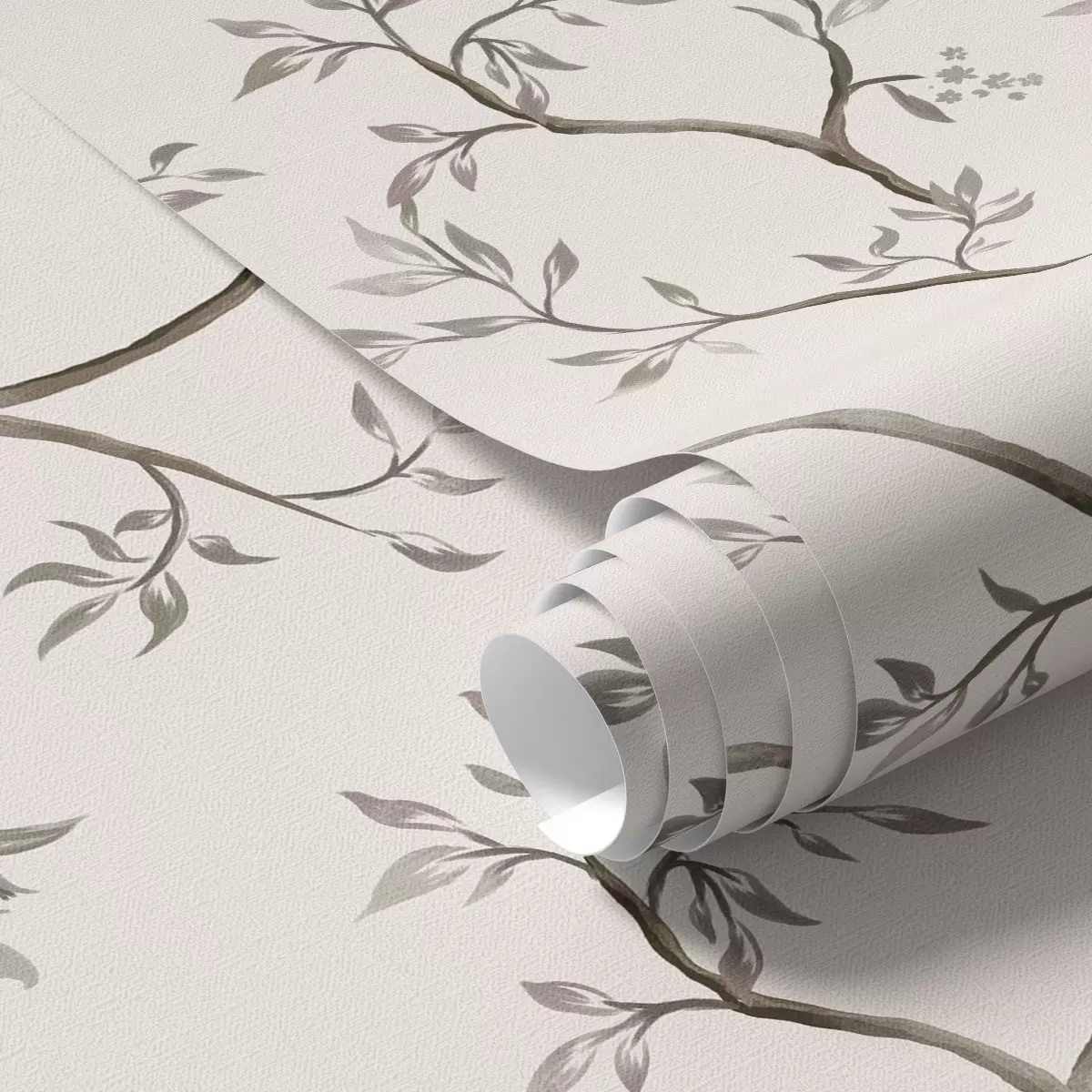 Ταπετσαρία Λεπτά φυλλώδη κλαδιά σε ζεστό κρεμ φόντο Nr. a00597v1