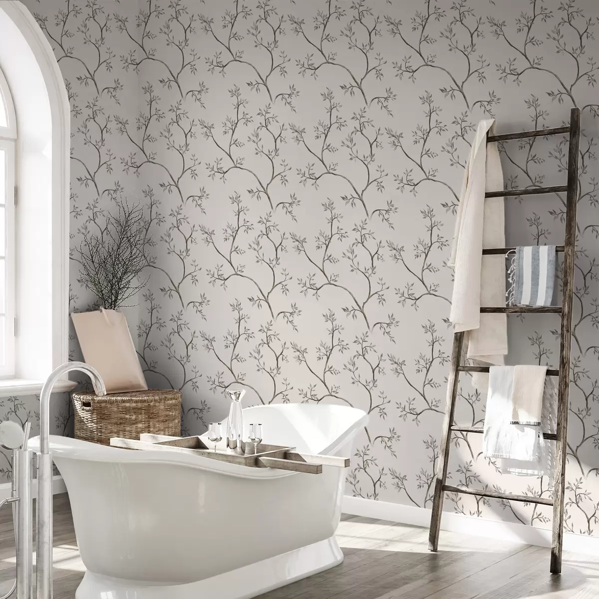 Ταπετσαρία Λεπτά φυλλώδη κλαδιά σε ζεστό κρεμ φόντο Nr. a00597v1