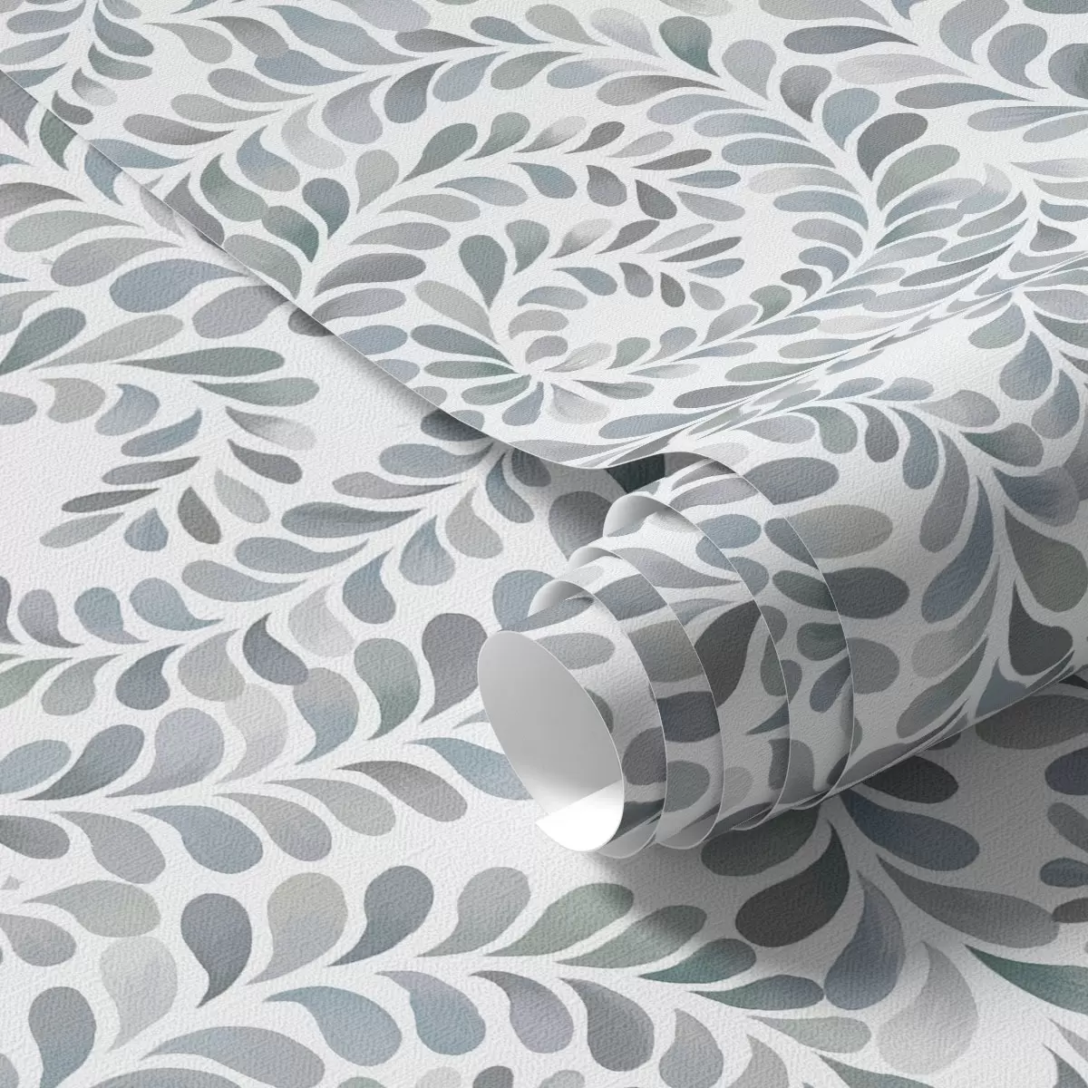 Ταπετσαρία Φυλλώδεις σπείρες σε δροσερούς γκρι-μπλε τόνους Nr. a00602v1