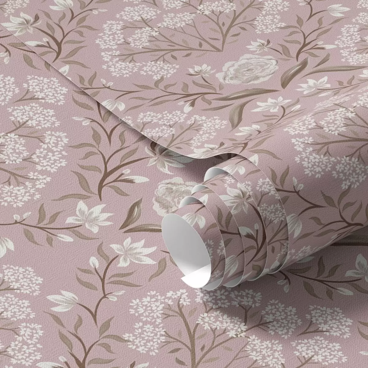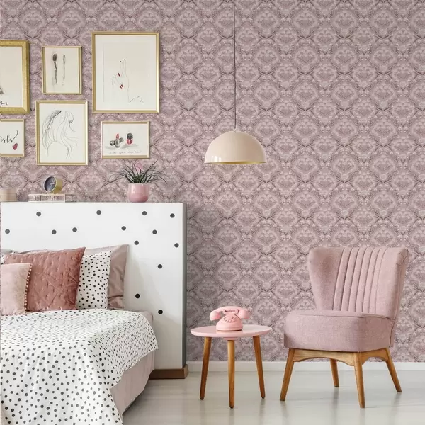 Ταπετσαρία Ροζ δαμασκηνό: παιώνιες, χιονάνθεμα και δαντελωτά σμήνη Nr. a00603
