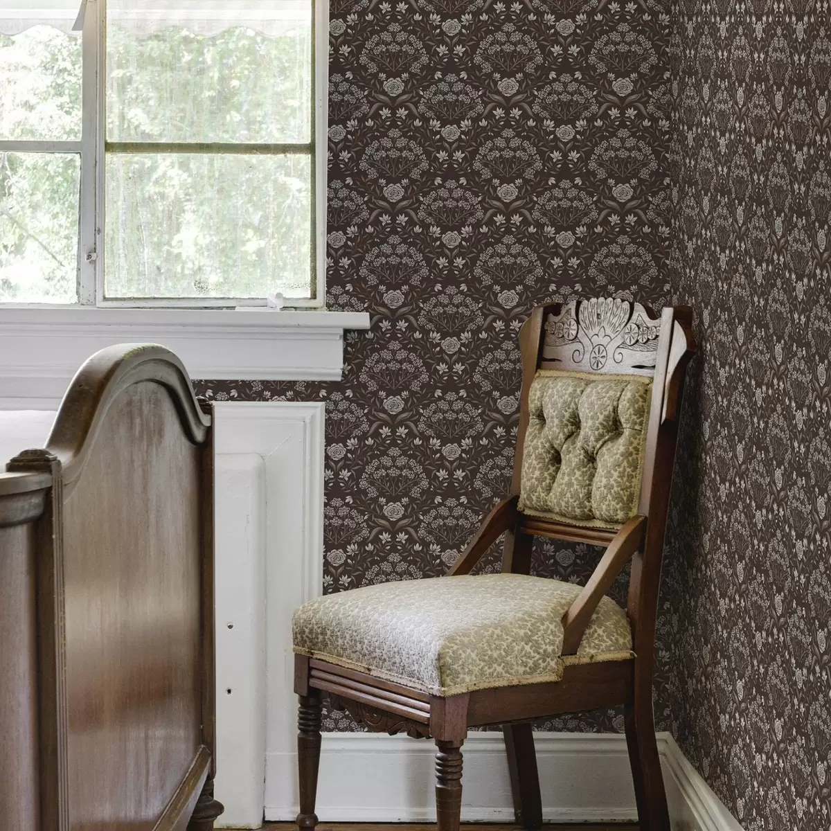 Ταπετσαρία Σκούρο σοκολατένιο δαμασκηνό με παιώνιες και χιονάνθη Nr. a00603v2