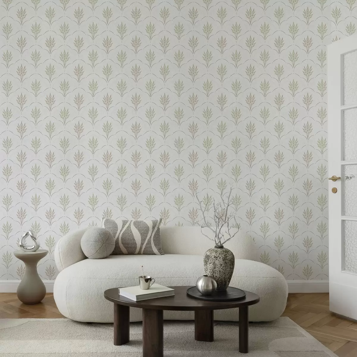 Ταπετσαρία Σιτάρι σε τοξωτό διακοσμητικό στοιχείο, απαλά παστέλ χρώματα σε λευκό φόντο Nr. a00607v1