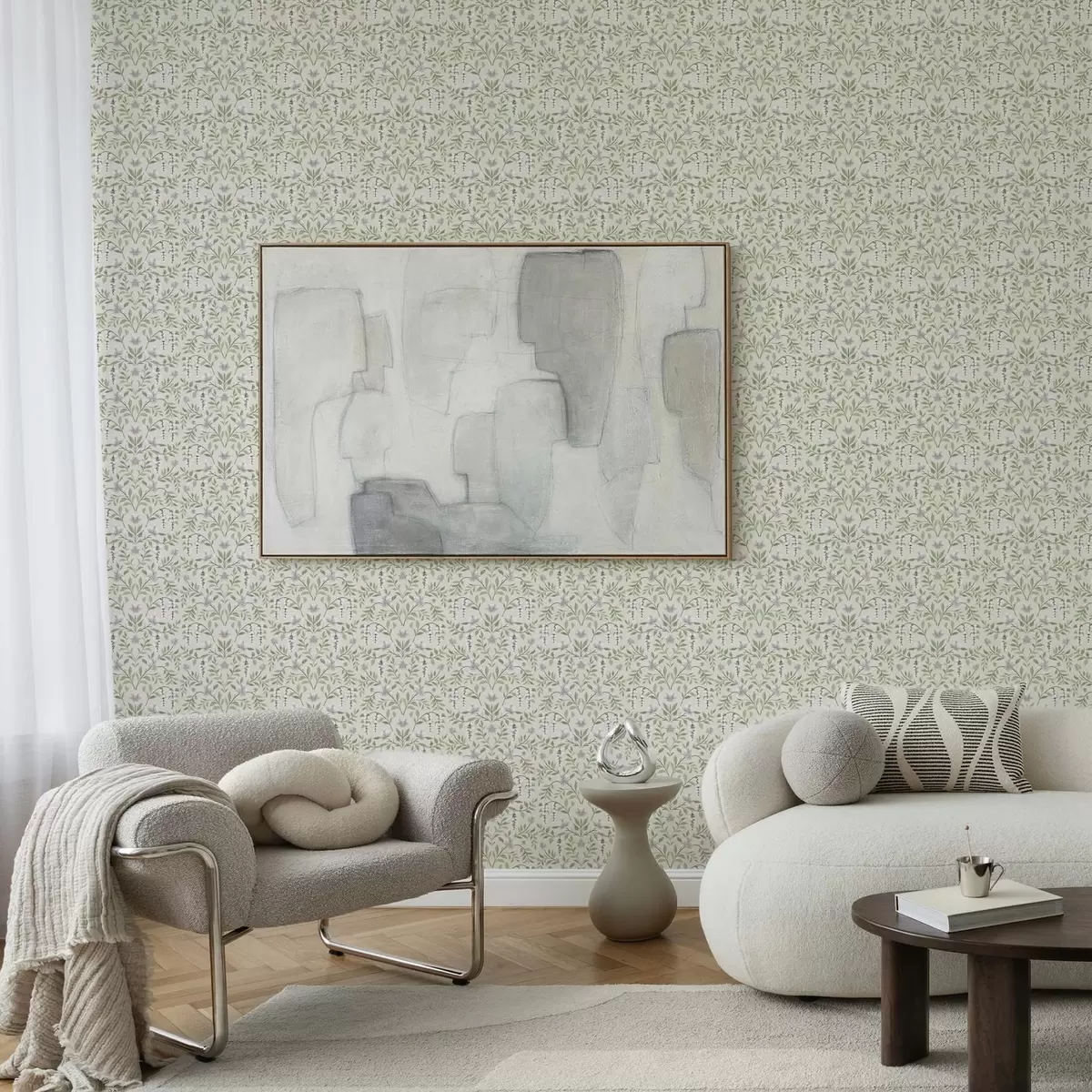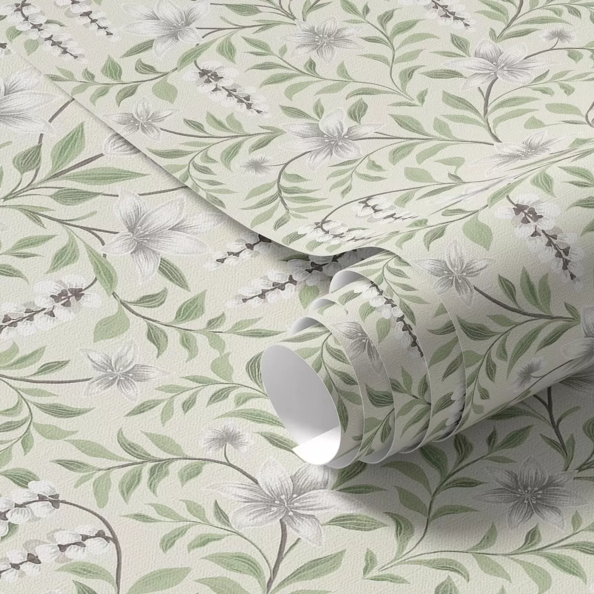 Ταπετσαρία Ελαφρύ αμπέλι με λευκά λουλούδια, συμμετρία Nr. a00609