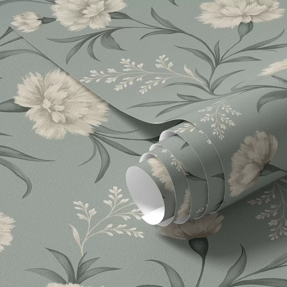 Ταπετσαρία Γαλάζια γαρίφαλα σε γκρι-μπλε φόντο, εκλεπτυσμένη εκτύπωση Nr. a00610
