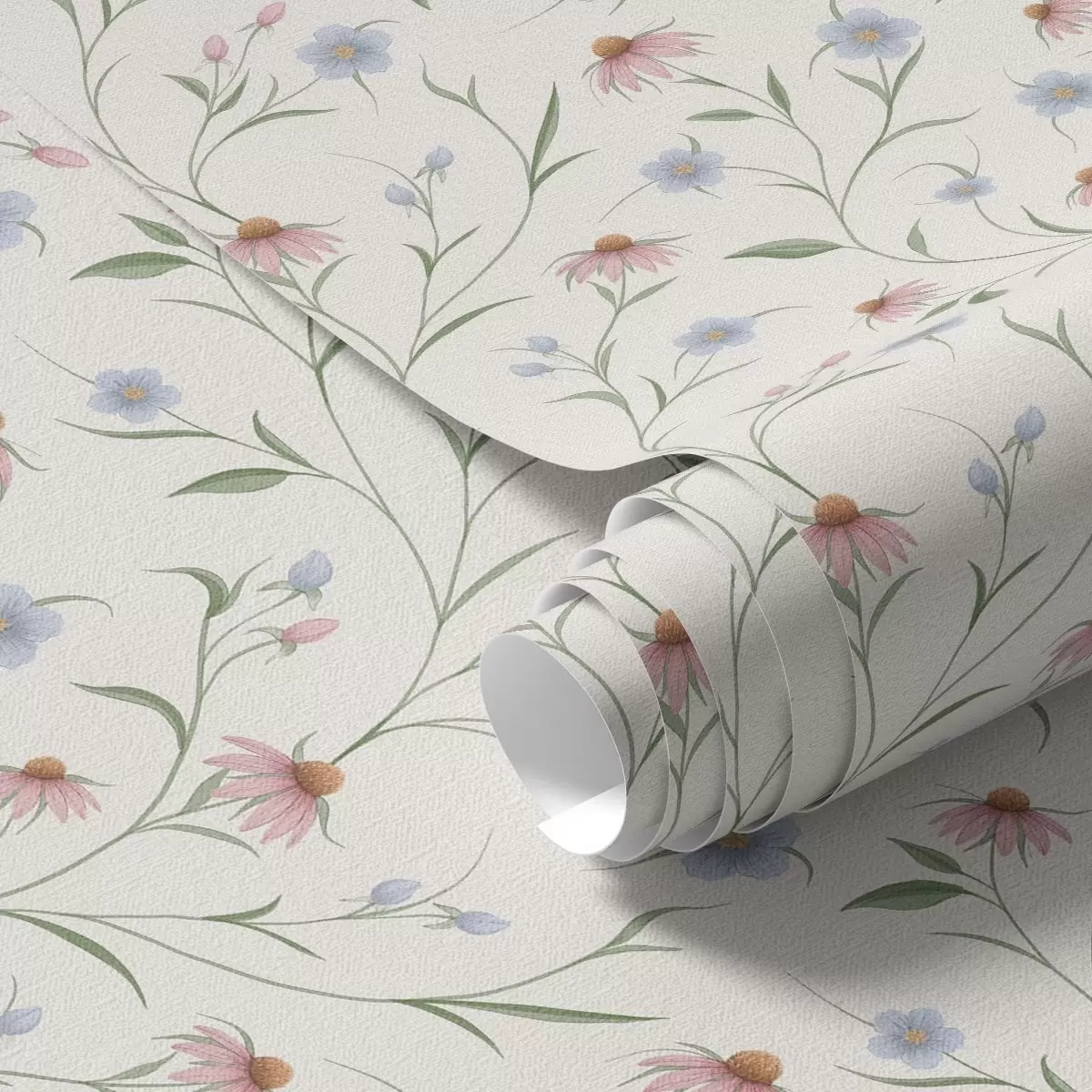 Ταπετσαρία Μαργαρίτες και εχινάκεια σε κρεμ φόντο, ελαφρότητα Nr. a00614