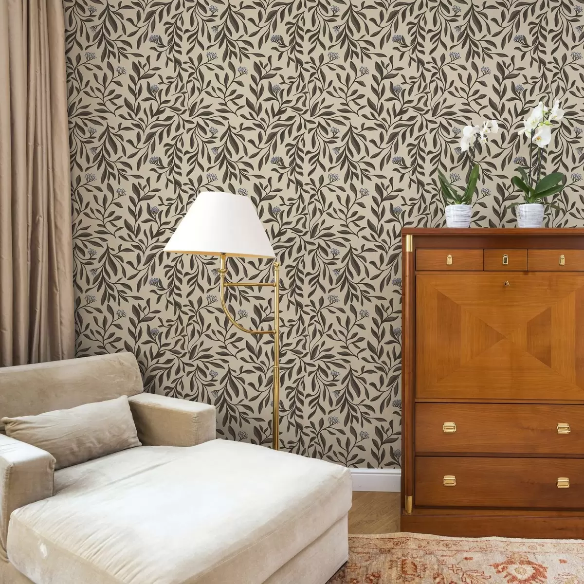 Ταπετσαρία Σοκολατένια κλαδιά με μπλε μούρα σε ζεστό φόντο Nr. a00615