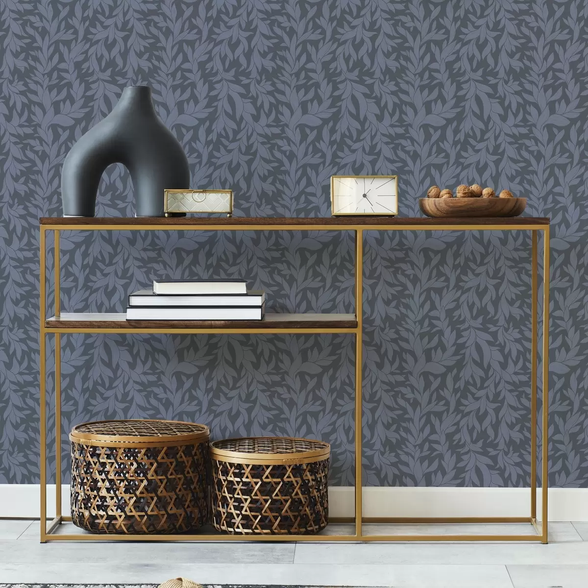 Ταπετσαρία Γραφίτης-μπλε φόντο και μπλε φύλλα, πινελιά με υφή Nr. a00616v2