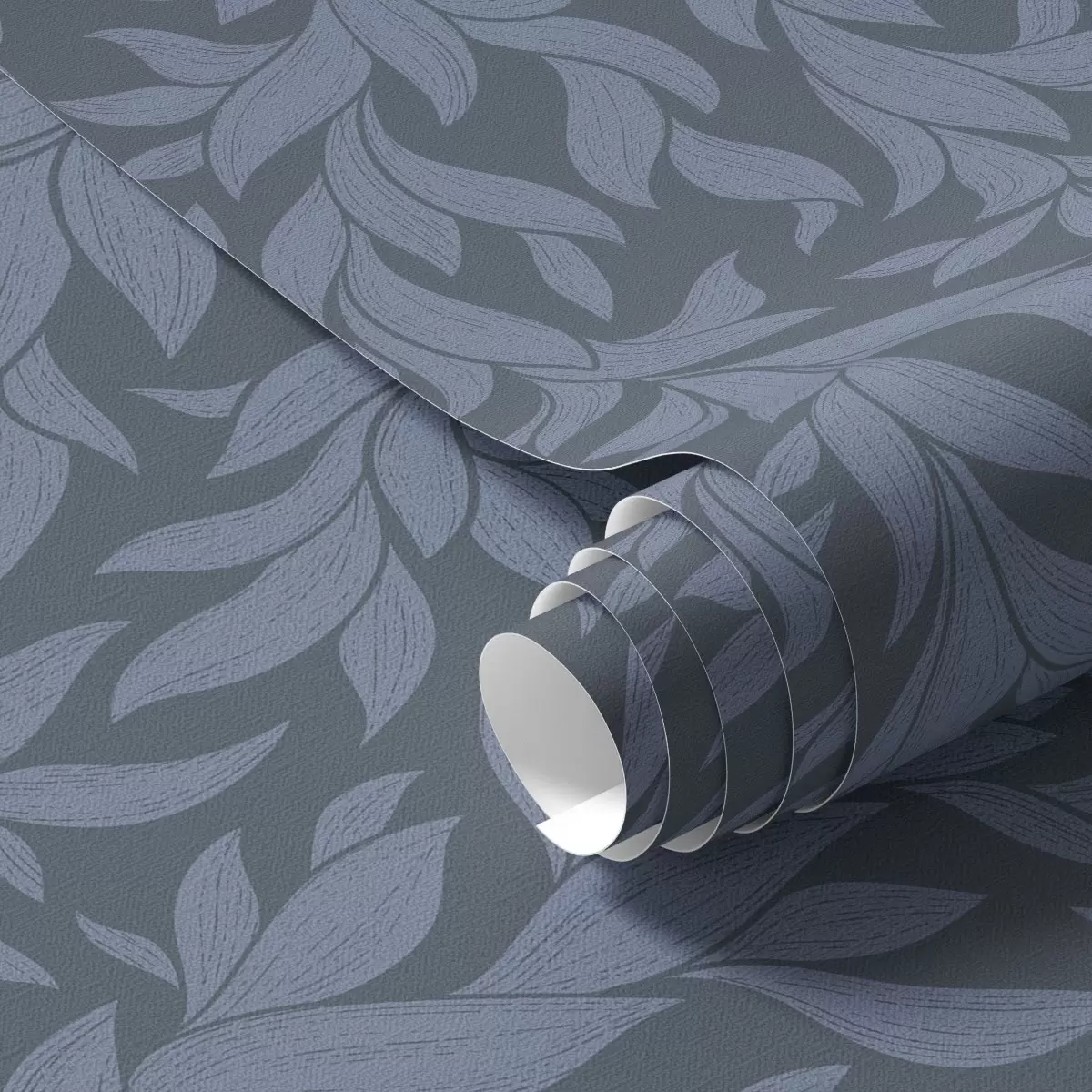 Ταπετσαρία Γραφίτης-μπλε φόντο και μπλε φύλλα, πινελιά με υφή Nr. a00616v2