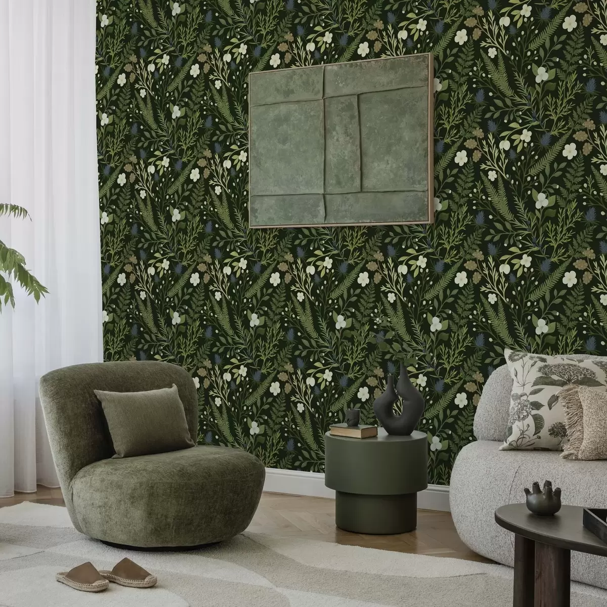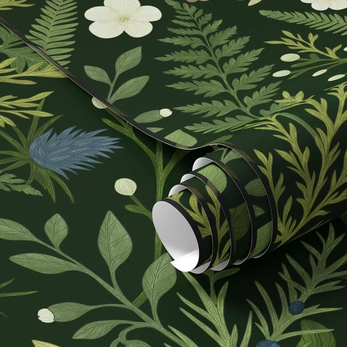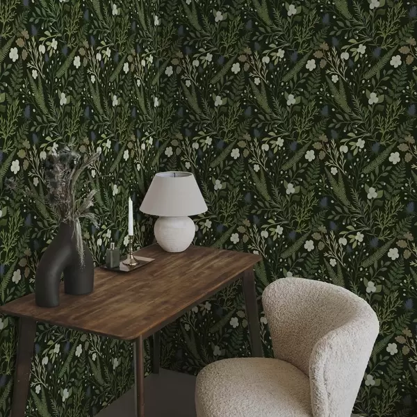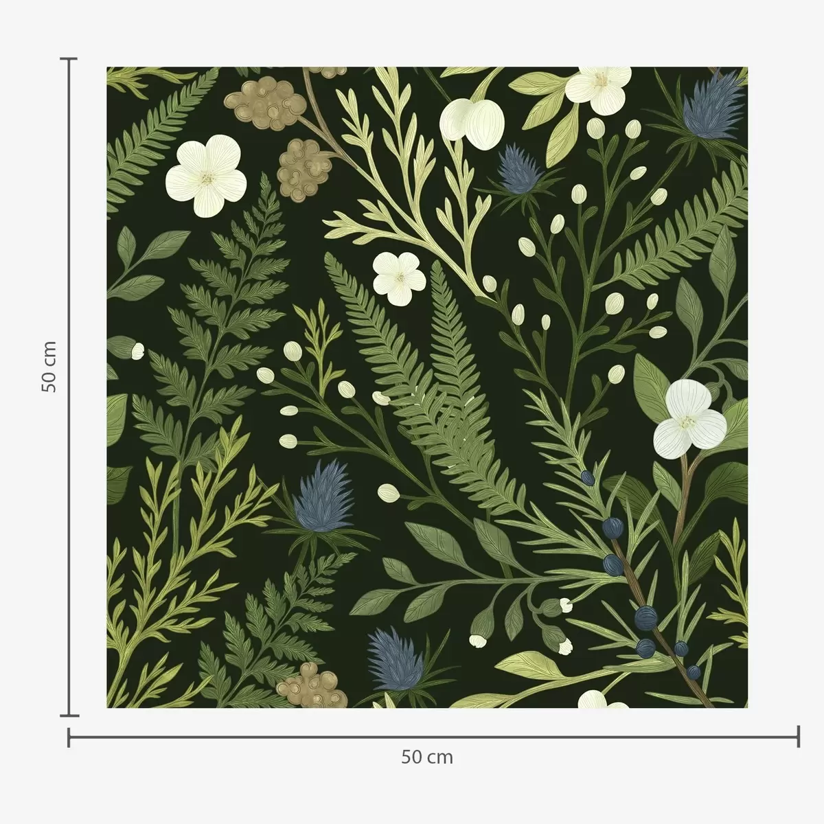 Ταπετσαρία Βότανα και μούρα του δάσους σε σκούρο πράσινο φόντο Nr. a00621v2