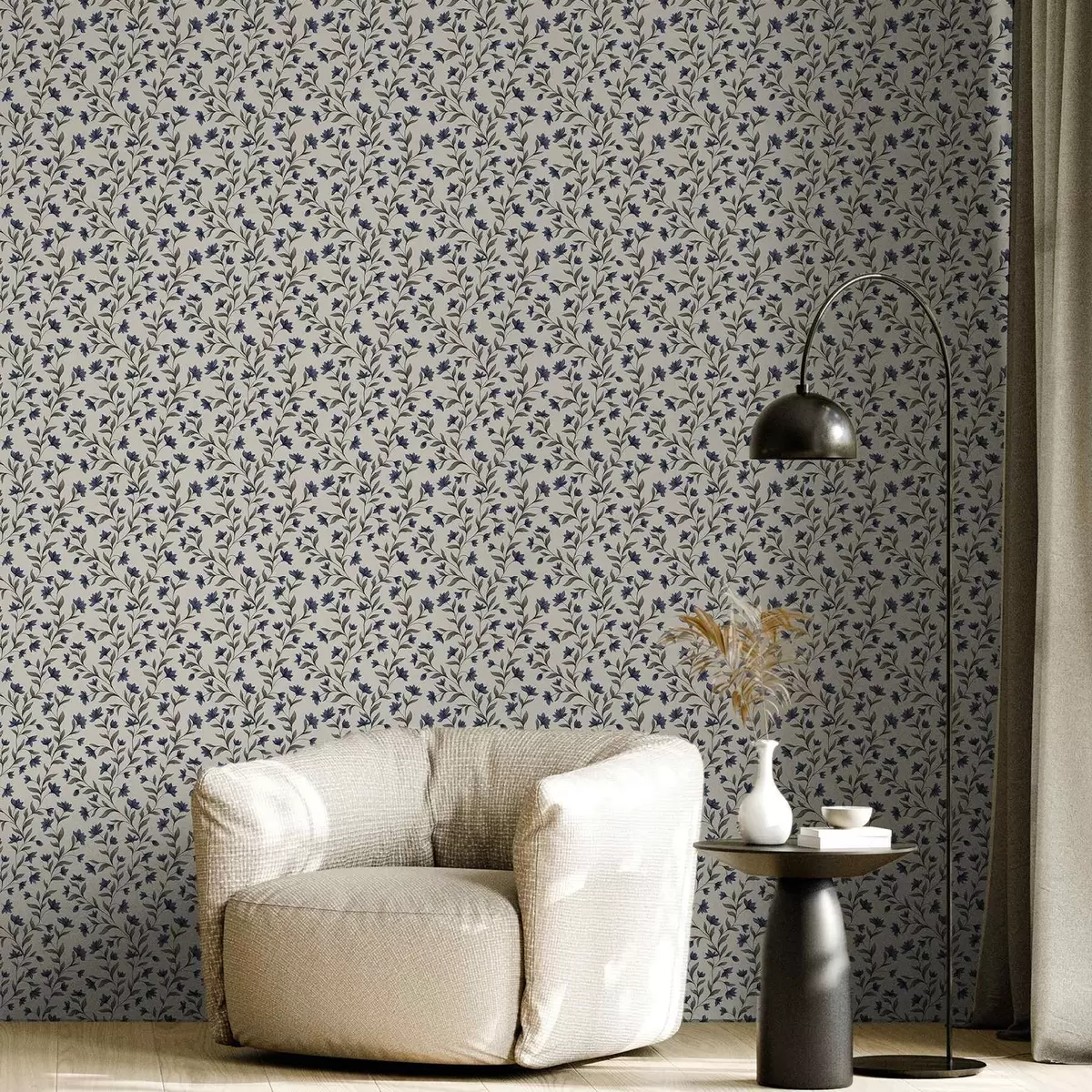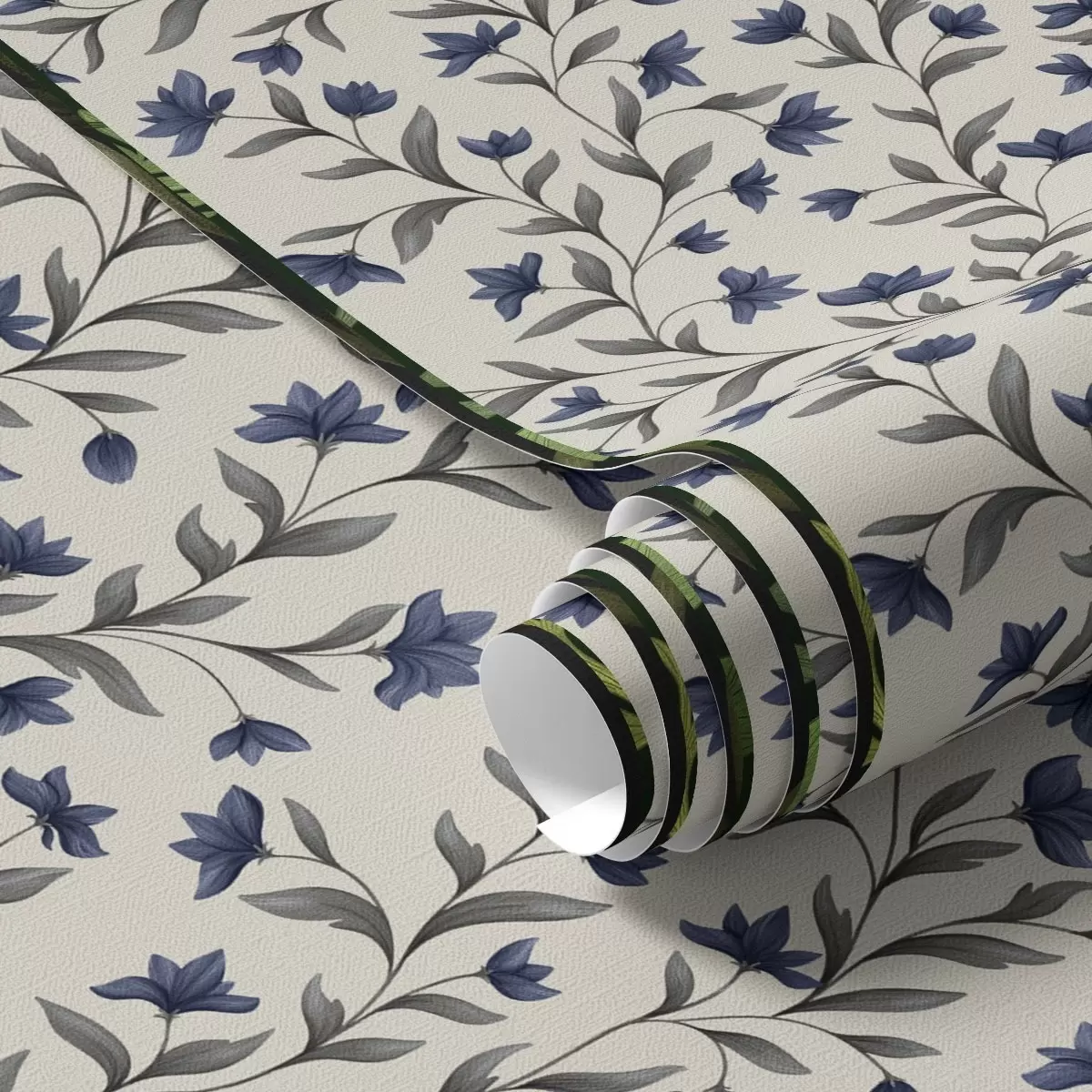Ταπετσαρία Μπλε καμπανούλες και γκρι πράσινο σε ανοιχτόχρωμο φόντο Nr. a00622v1