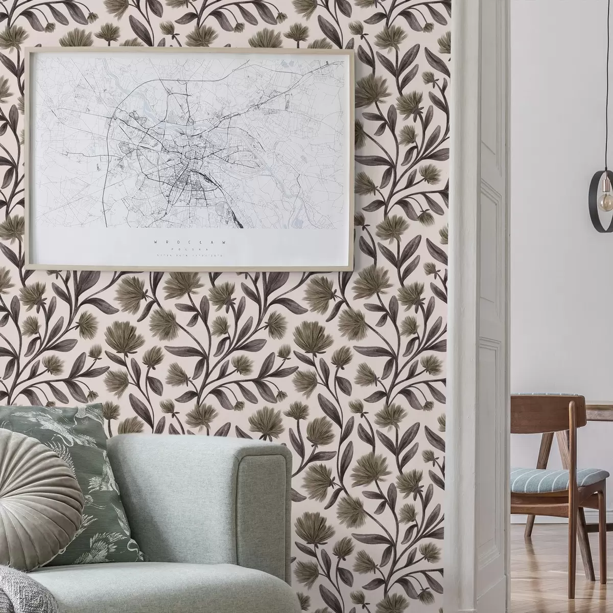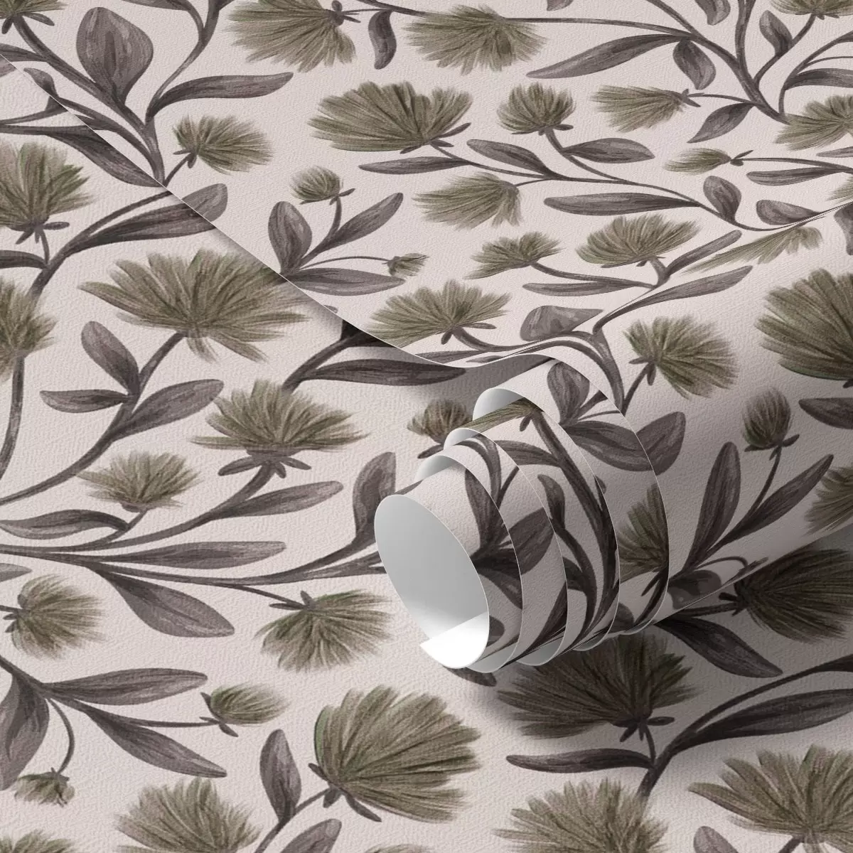 Ταπετσαρία Αγριολούλουδα σε αποχρώσεις του γκρι-ελιάς σε κρεμ φόντο Nr. a00623v1