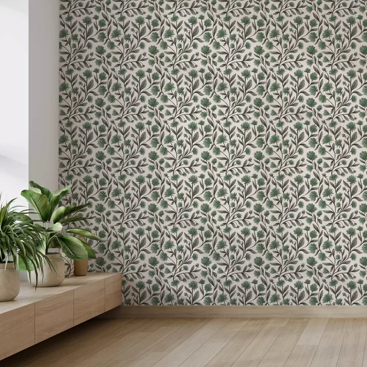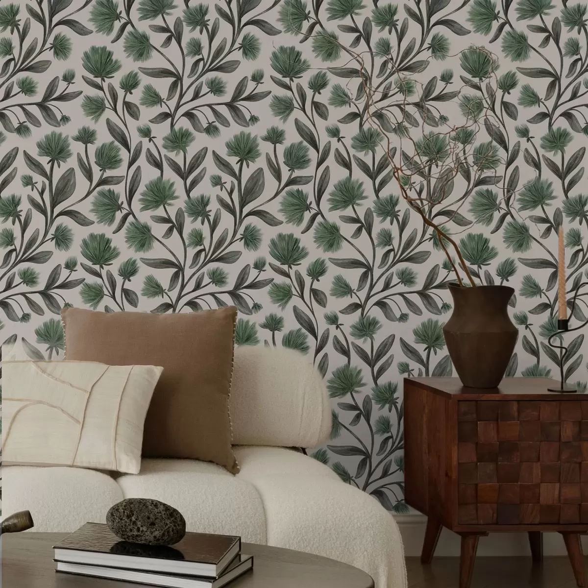 Ταπετσαρία Αγριολούλουδα σε πράσινη παλέτα σε κρεμ φόντο Nr. a00623v3