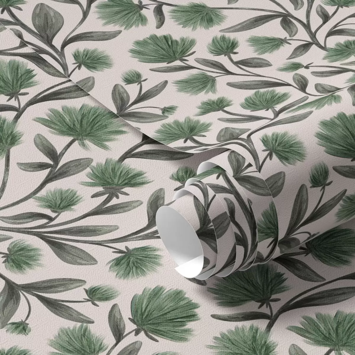 Ταπετσαρία Αγριολούλουδα σε πράσινη παλέτα σε κρεμ φόντο Nr. a00623v3