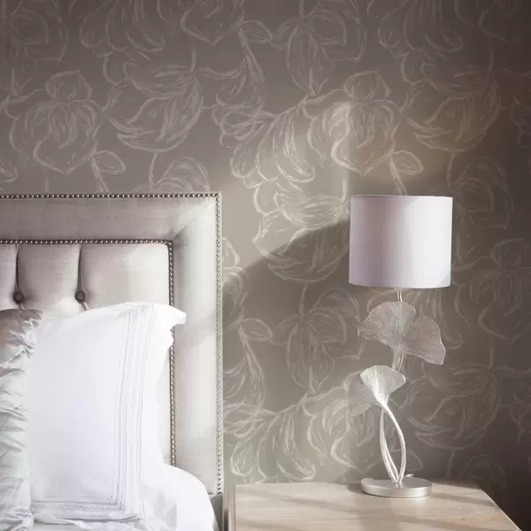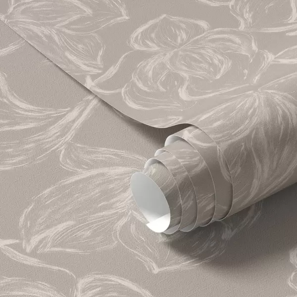 Ταπετσαρία Κρεμ λουλούδια σε ζεστό γκρι-καφέ φόντο Nr. a00625v2