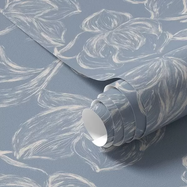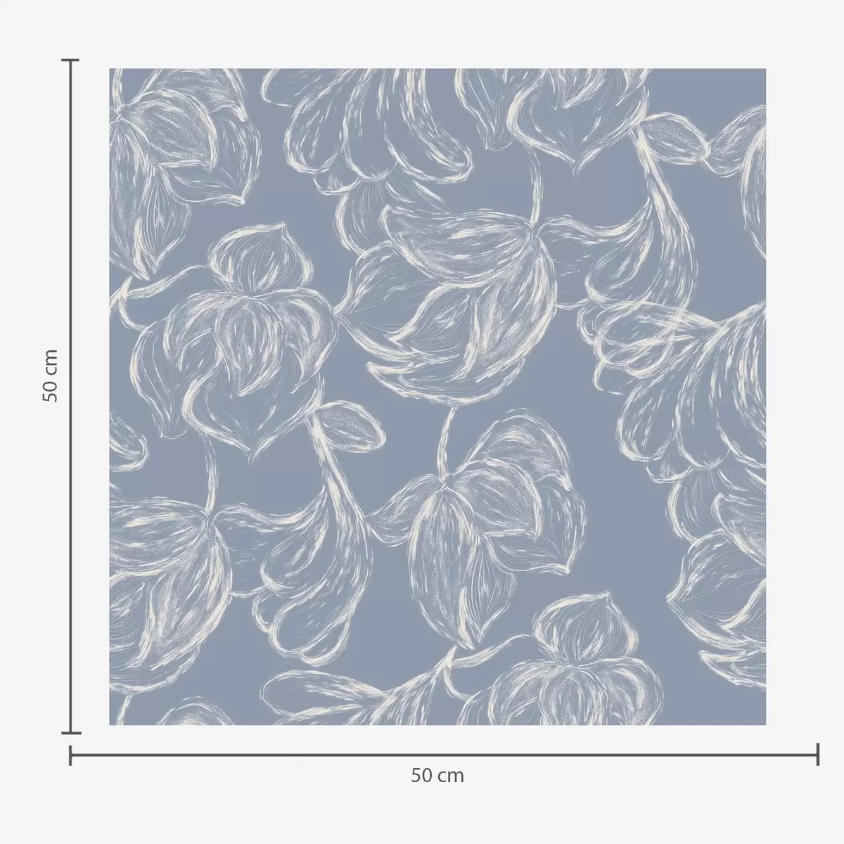 Ταπετσαρία Ανοιχτό μπλε φόντο με λουλούδια με ασβεστοειδές περίγραμμα Nr. a00625v3