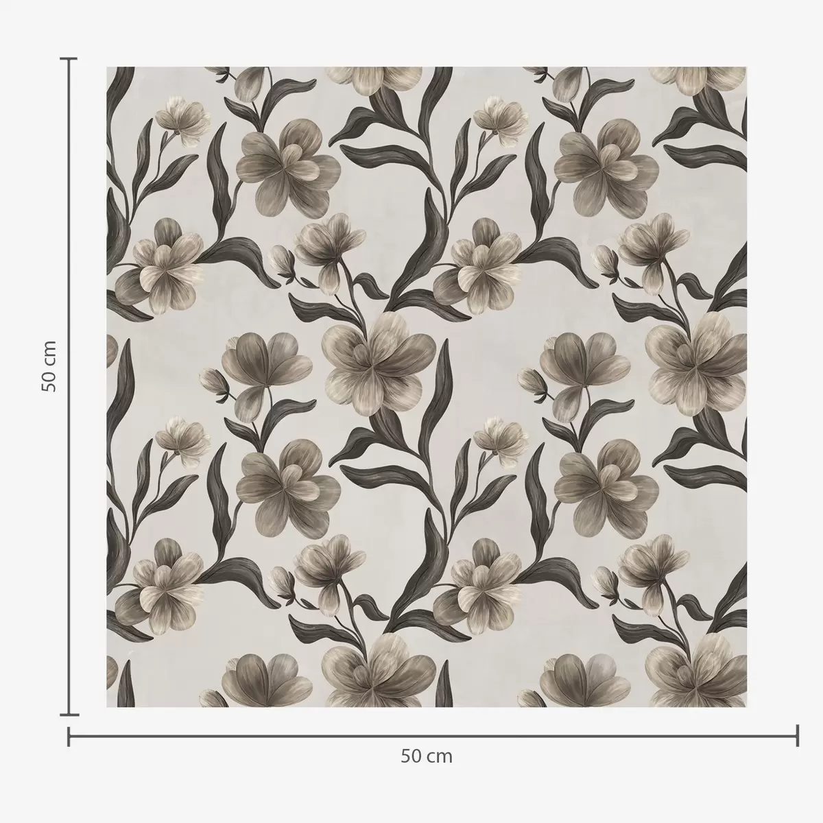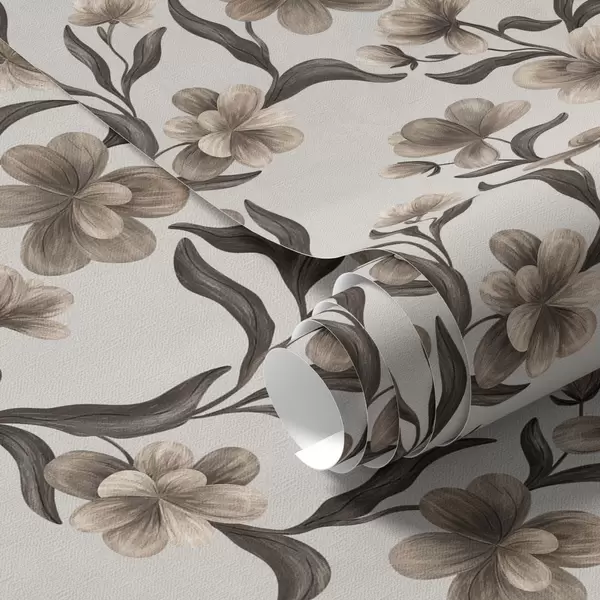 Ταπετσαρία Μπεζ λουλούδια και σκούρα κλαδιά σε ανοιχτό γκρι φόντο Nr. a00626v1