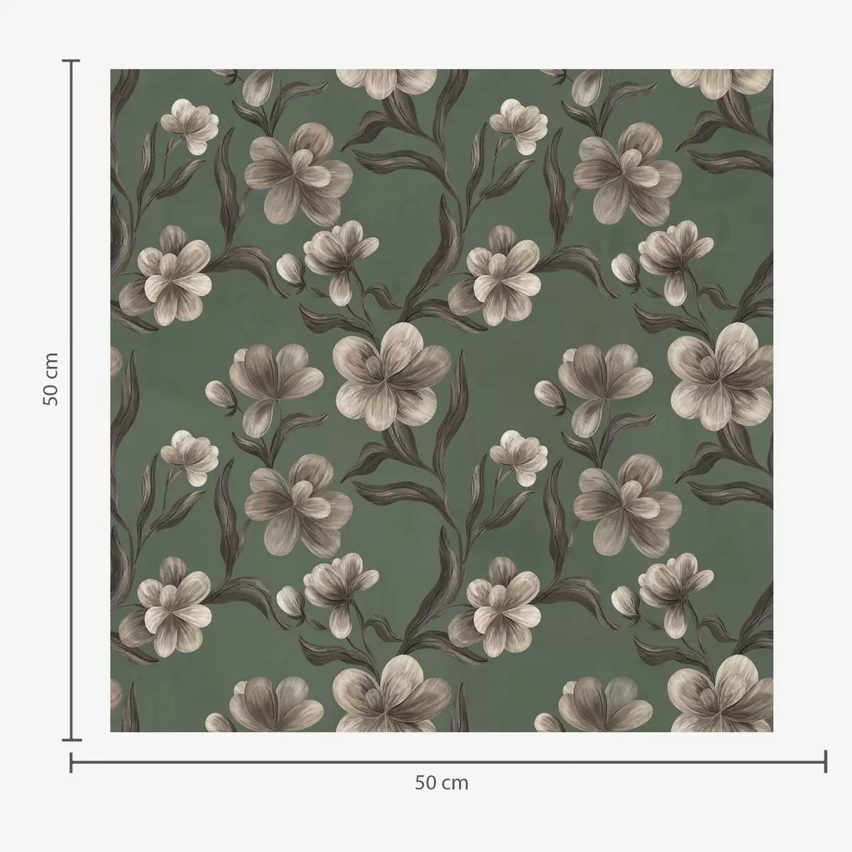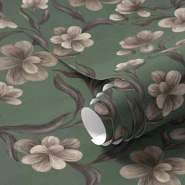 Ταπετσαρία Μπεζ λουλούδια σε πλούσιο πράσινο φόντο Nr. a00626v3