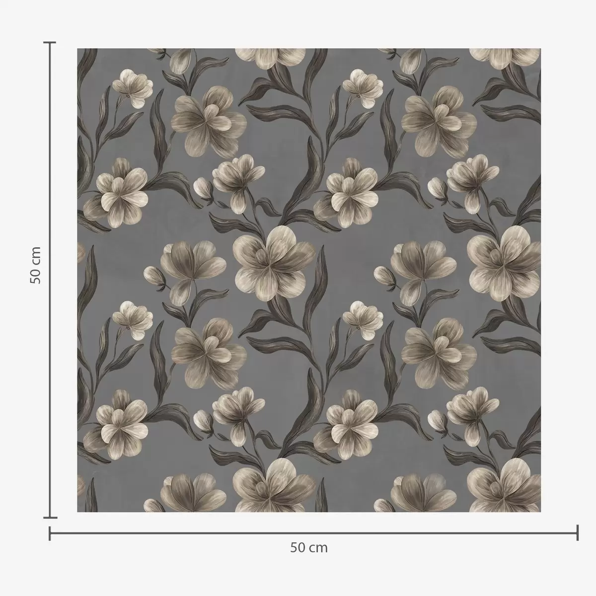 Ταπετσαρία Μπεζ λουλούδια σε φόντο γραφίτη-γκρι Nr. a00626v4