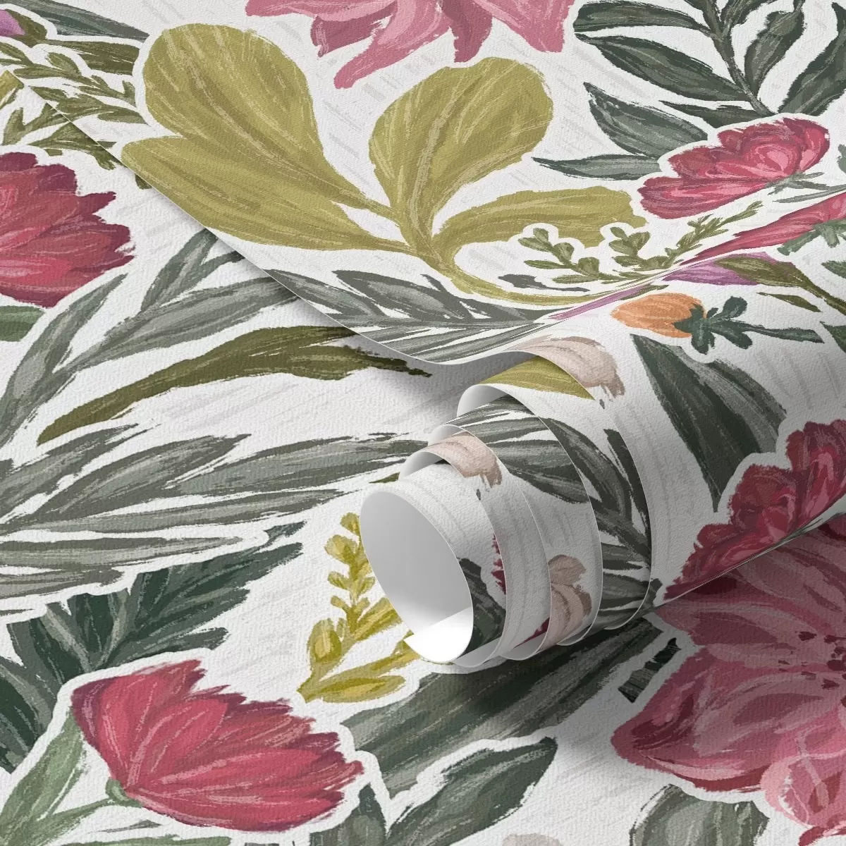 Ταπετσαρία Πλούσια ροζ και κρεμ λουλούδια σε λευκό φόντο, υφή παχιάς βαφής Nr. a00629v1