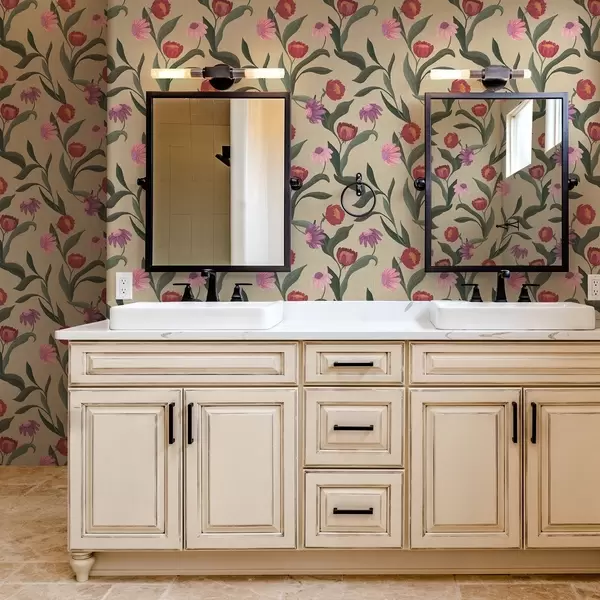 Ταπετσαρία Ροζ-κόκκινα λουλούδια σε μπεζ φόντο, χειροποίητη υφή Nr. a00631
