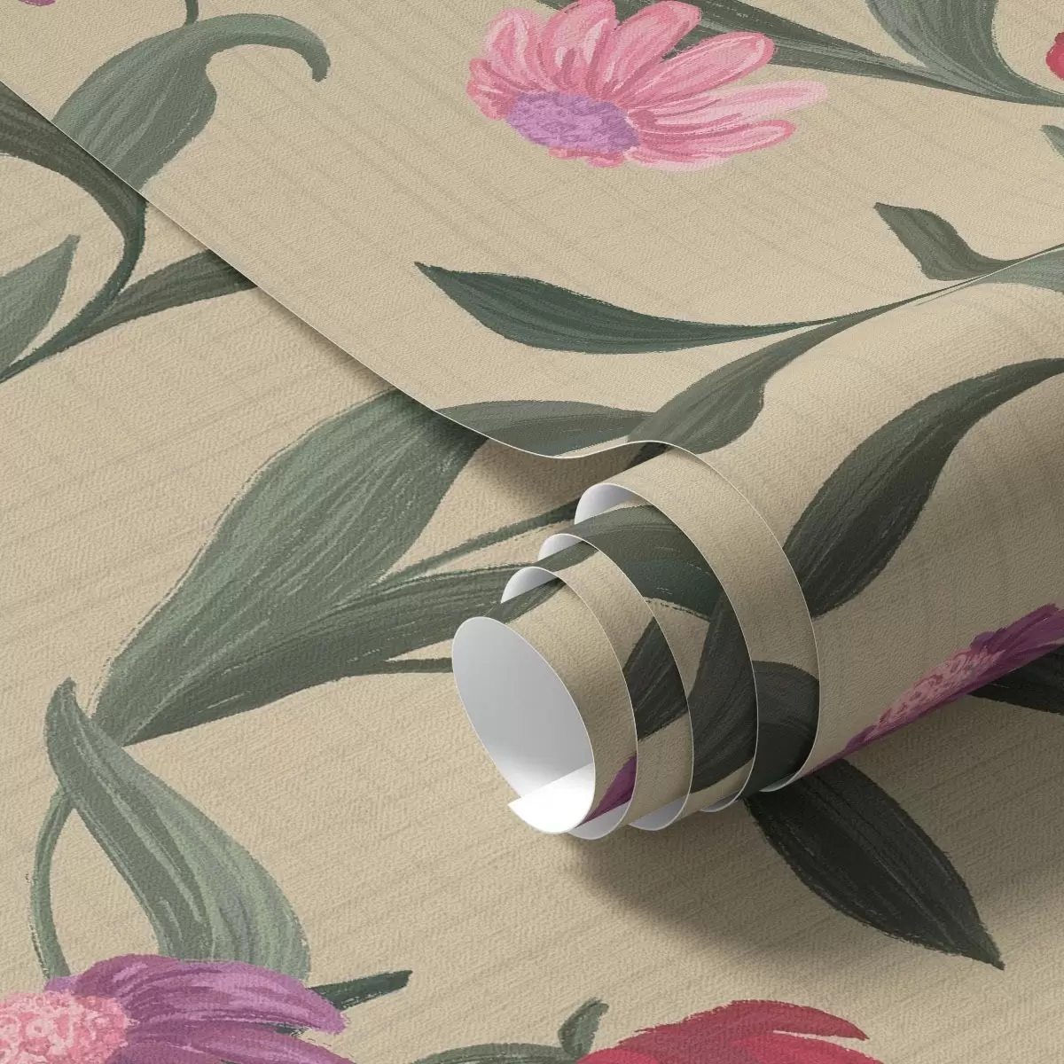Ταπετσαρία Ροζ-κόκκινα λουλούδια σε μπεζ φόντο, χειροποίητη υφή Nr. a00631
