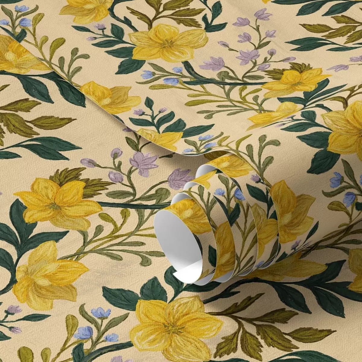 Ταπετσαρία Κίτρινα λουλούδια σε κάθετες γιρλάντες σε κρεμ φόντο Nr. a00632