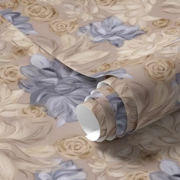 Ταπετσαρία Πλούσια κρέμα και μπλε λουλούδια σε παστέλ αποχρώσεις Nr. a00634