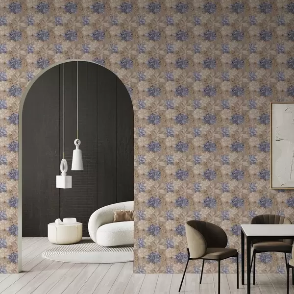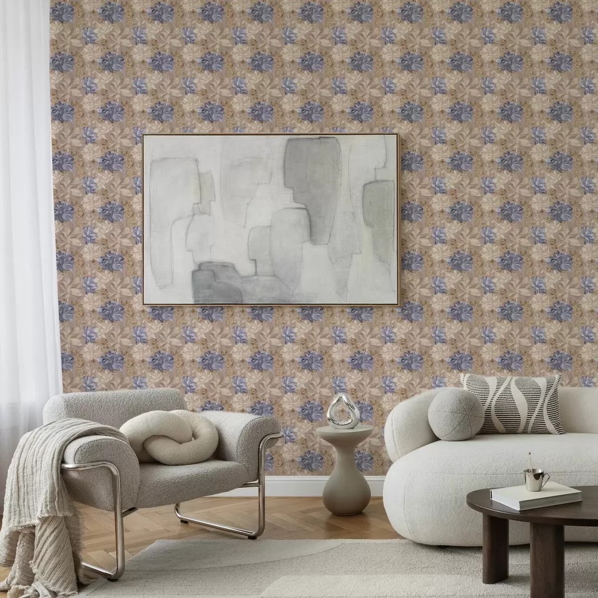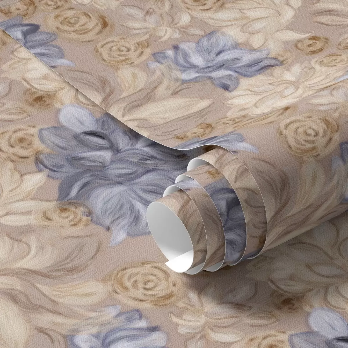 Ταπετσαρία Πλούσια κρέμα και μπλε λουλούδια σε παστέλ αποχρώσεις Nr. a00634