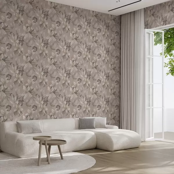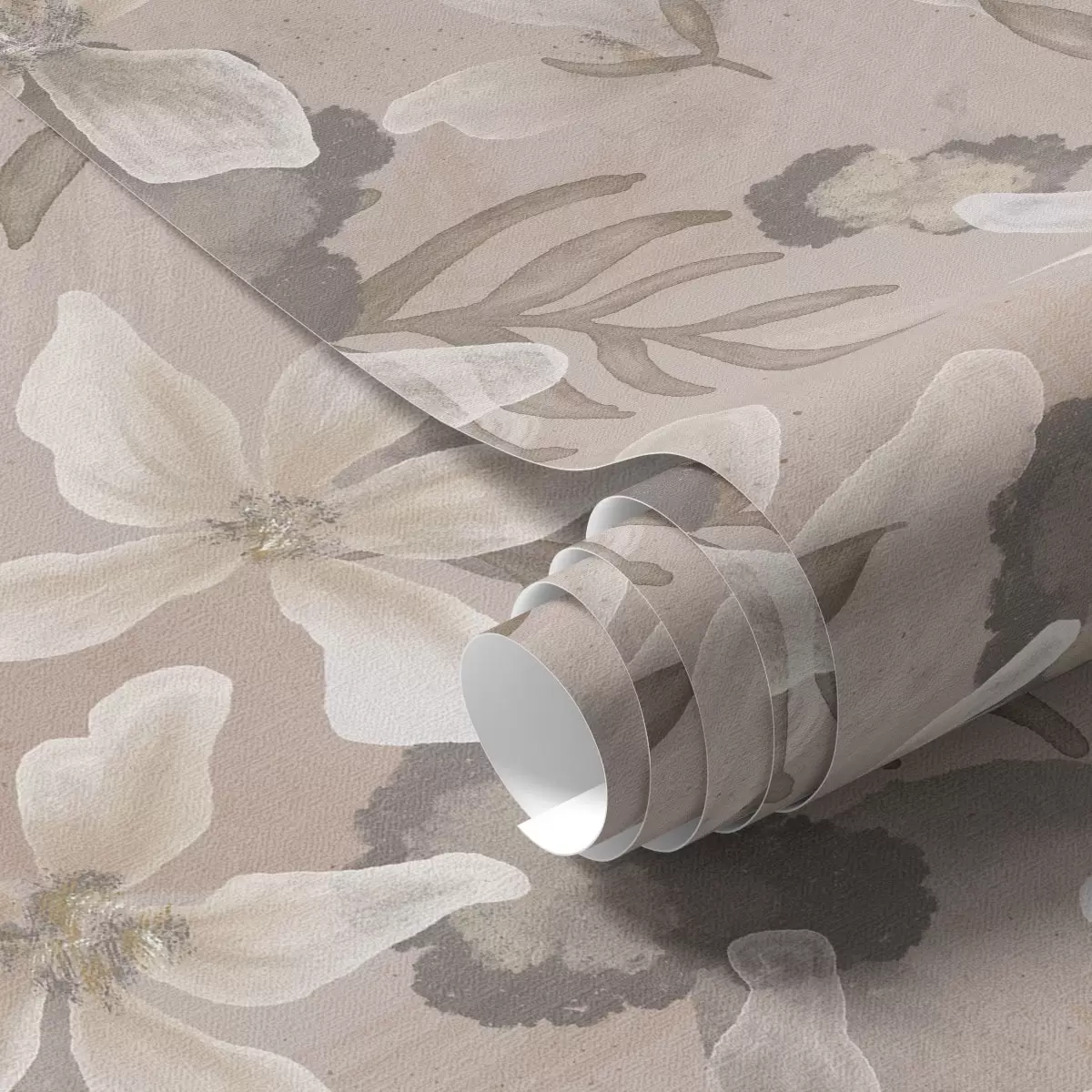 Ταπετσαρία Μεγάλα μπεζ λουλούδια με αφηρημένα ακουαρέλα σημεία Nr. a00635