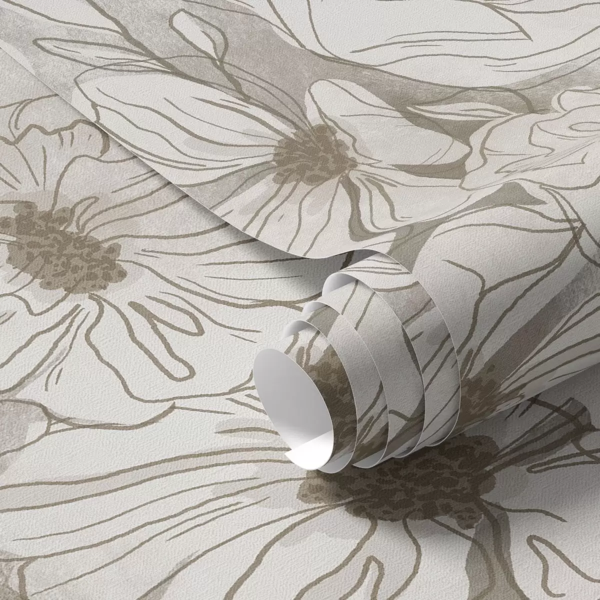 Ταπετσαρία Γραμμικά λουλούδια σε μονοχρωματική παλέτα μπεζ-γκρι Nr. a00636