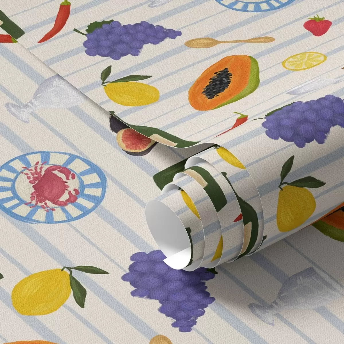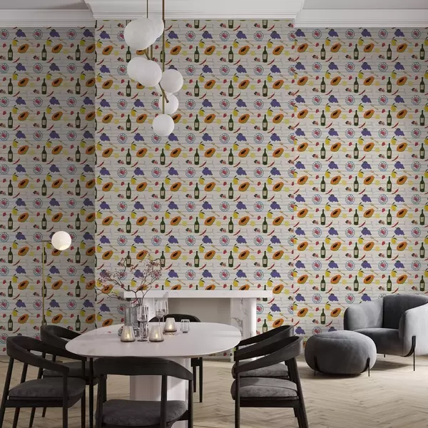 Ταπετσαρία Εκτύπωση κουζίνας με φρούτα, ποτήρια και πιάτα Nr. a00638