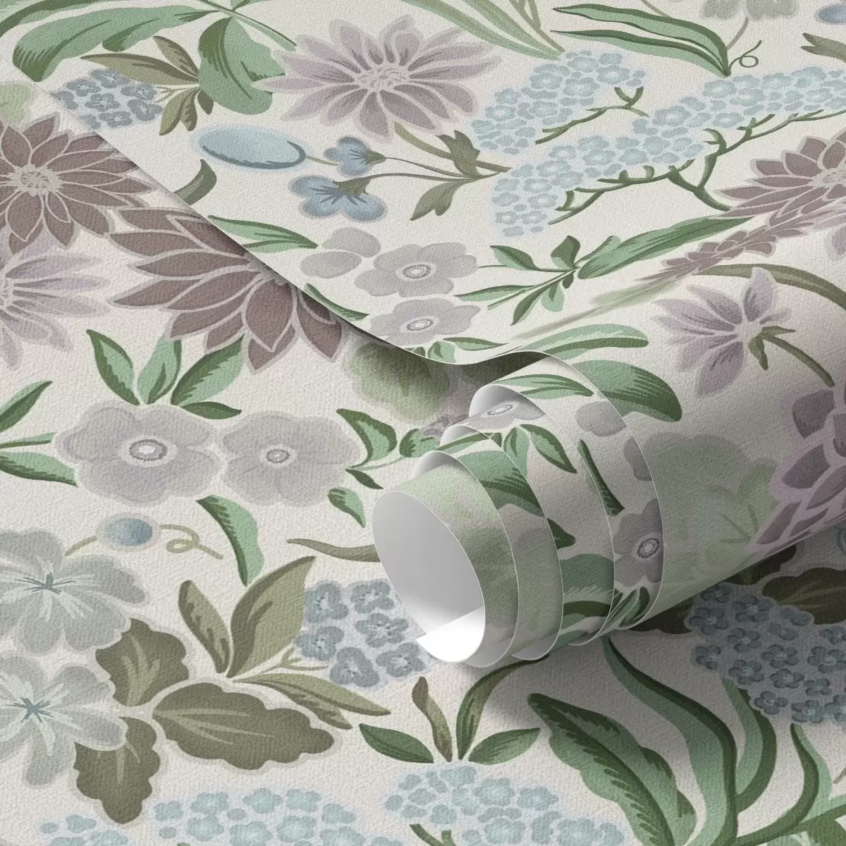 Ταπετσαρία Παστέλ λουλούδια και φύλλωμα σε παλέτα μενταγιόν μπλε Nr. a00642