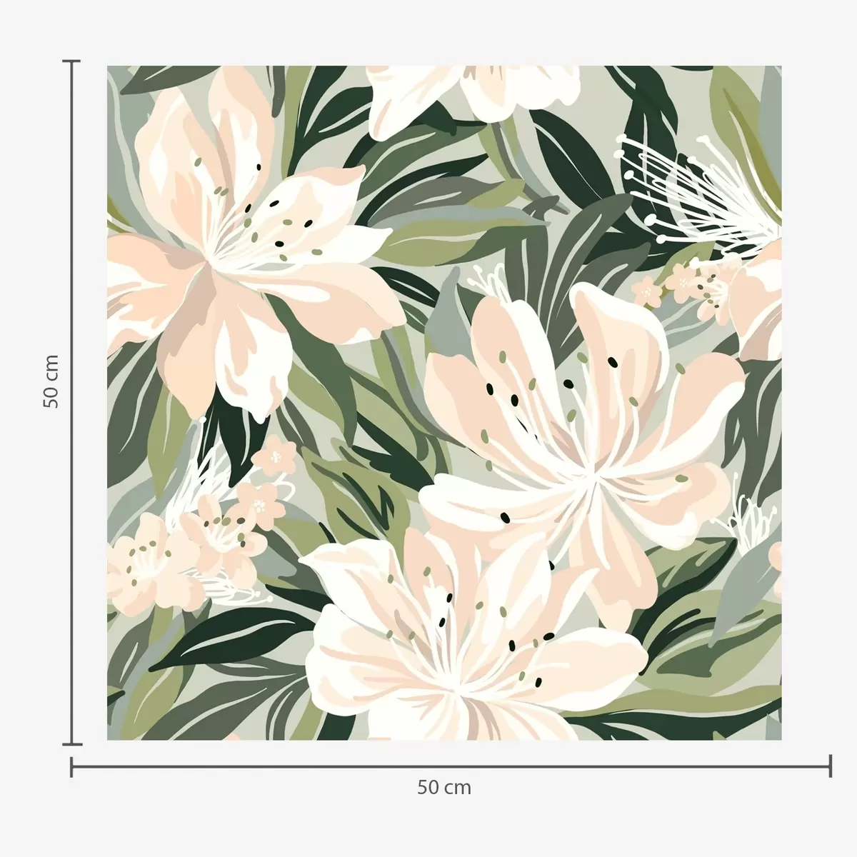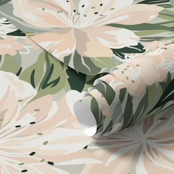 Ταπετσαρία Μεγάλα κρεμ λουλούδια σε ανοιχτό πράσινο φόντο Nr. a00646