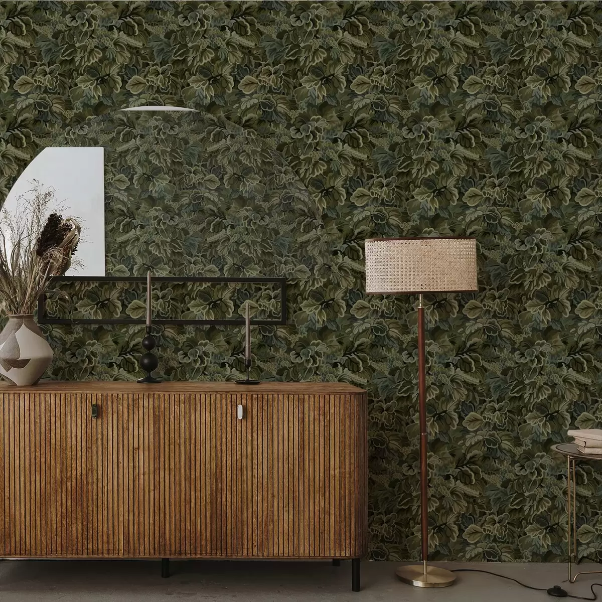 Ταπετσαρία Πυκνά φύλλα σταφυλιού σε βαθύ πράσινο χρώμα Nr. a00647