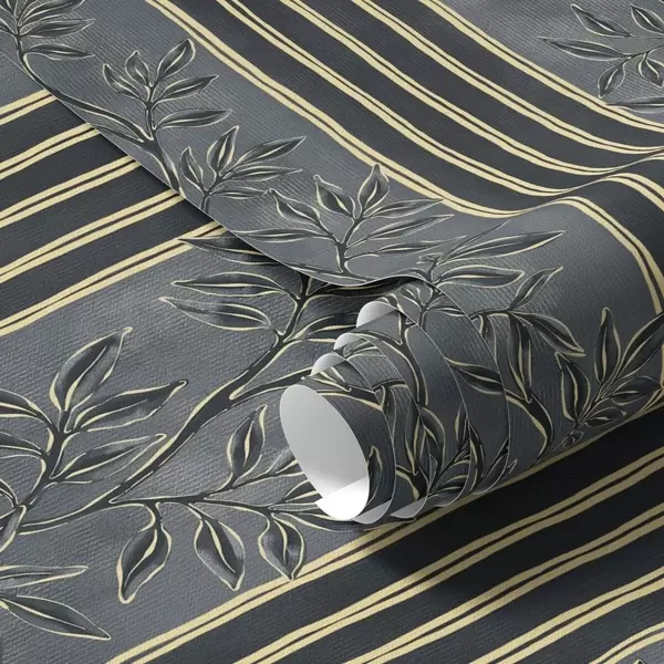 Ταπετσαρία Κάθετες ρίγες με φυτικά μοτίβα σε σκούρους τόνους Nr. a00648