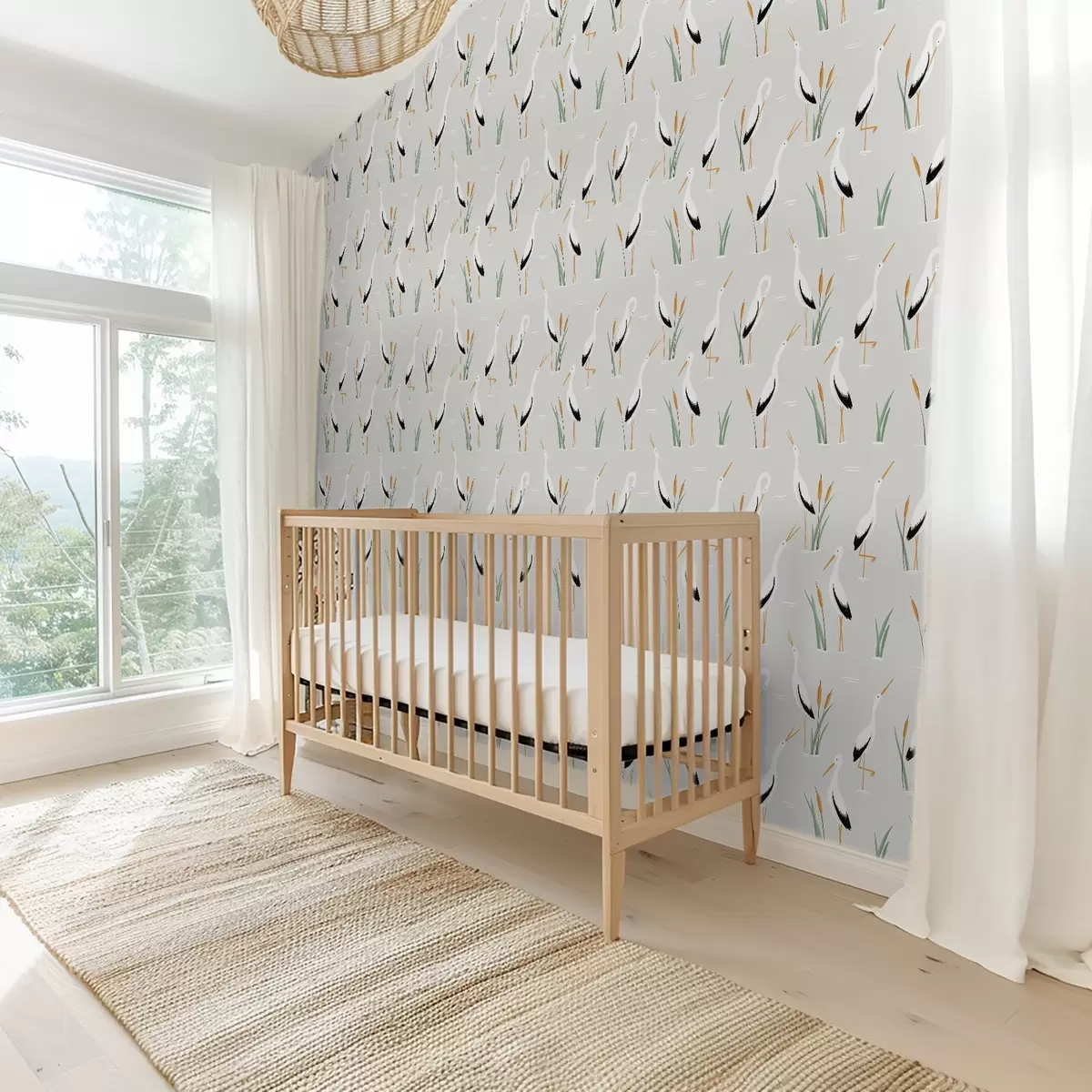 Ταπετσαρία Ερωδιοί ανάμεσα σε καλάμια σε ανοιχτό γκρι φόντο Nr. a00650