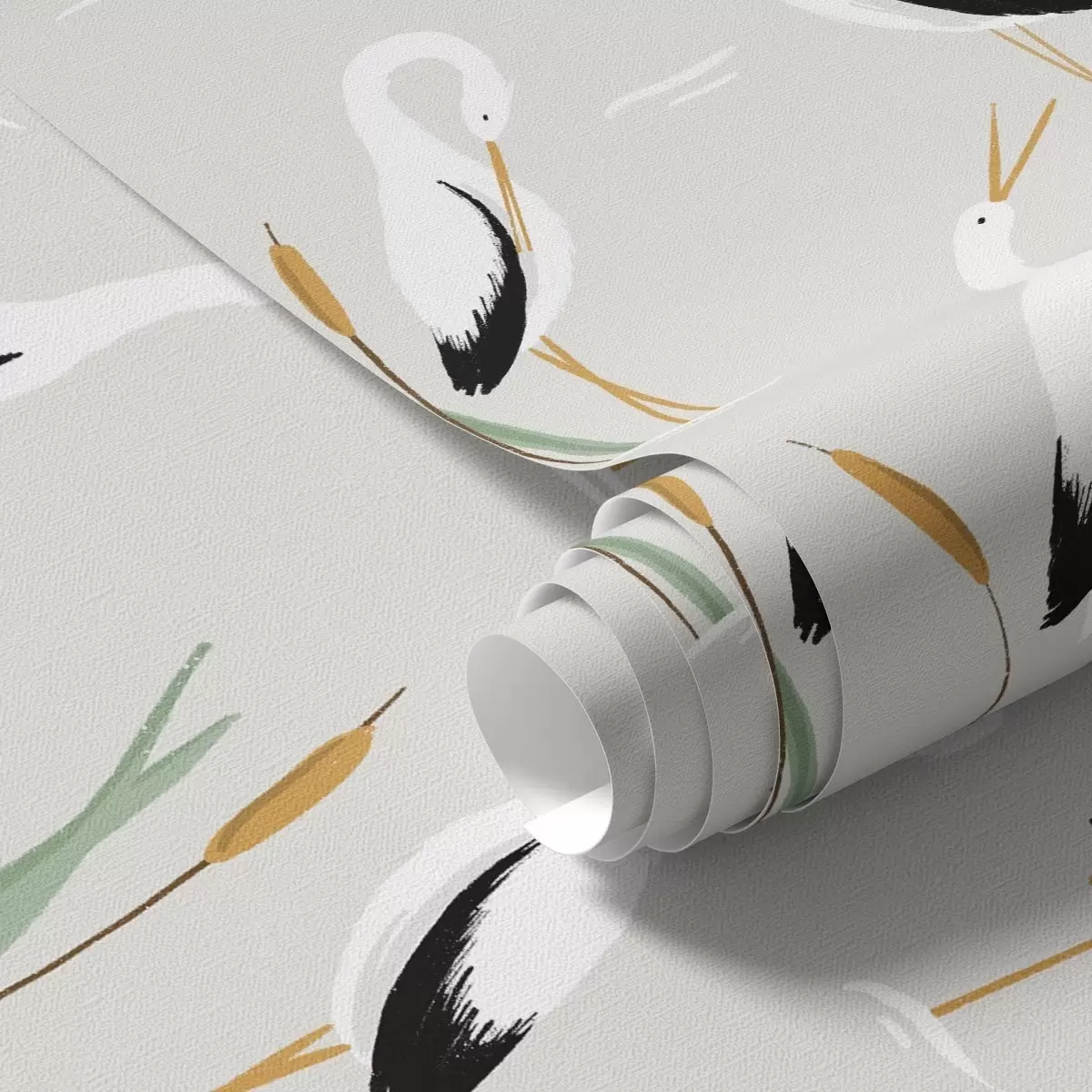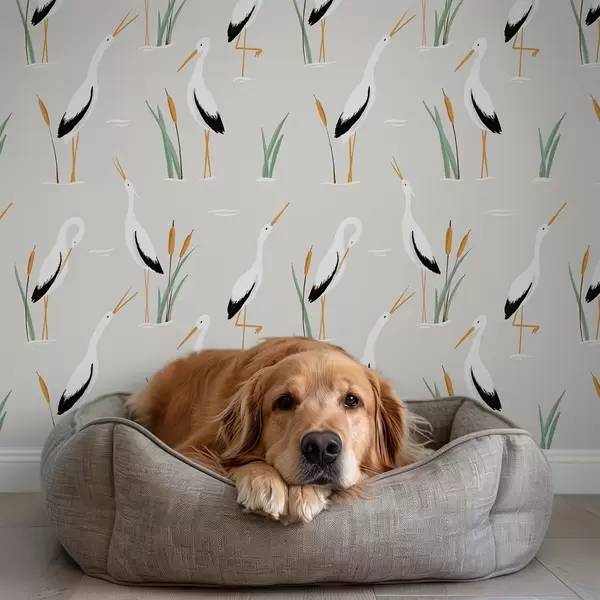 Ταπετσαρία Ερωδιοί ανάμεσα σε καλάμια σε ανοιχτό γκρι φόντο Nr. a00650
