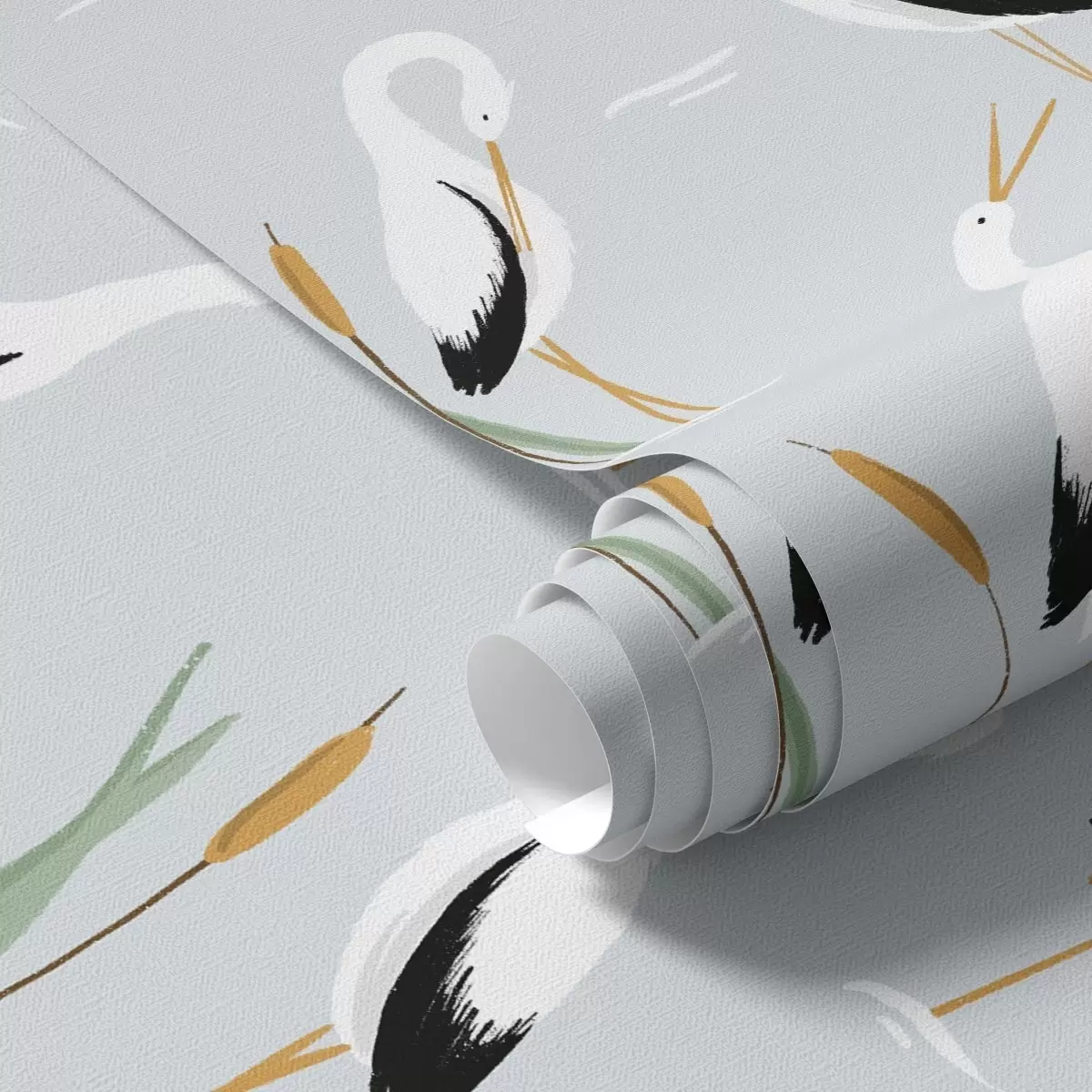 Ταπετσαρία Ερωδιοί ανάμεσα σε καλάμια σε απαλό μπλε φόντο Nr. a00650v1