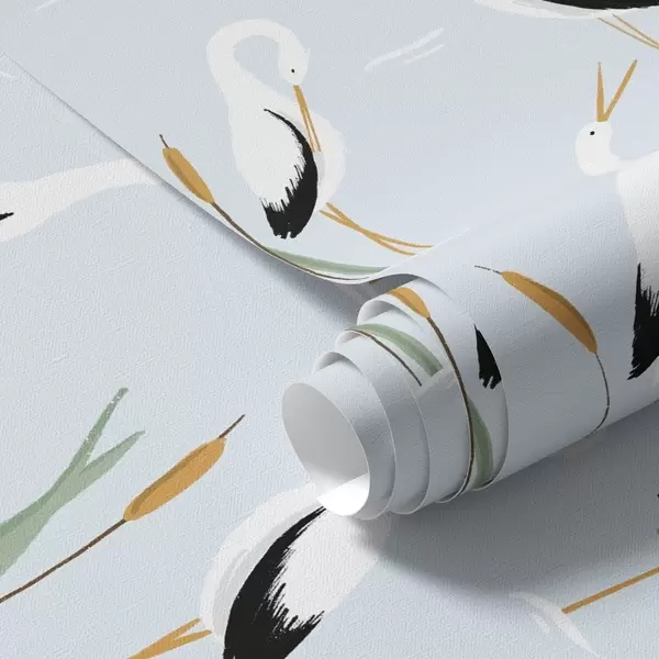 Ταπετσαρία Ερωδιοί ανάμεσα σε καλάμια σε απαλό μπλε φόντο Nr. a00650v3