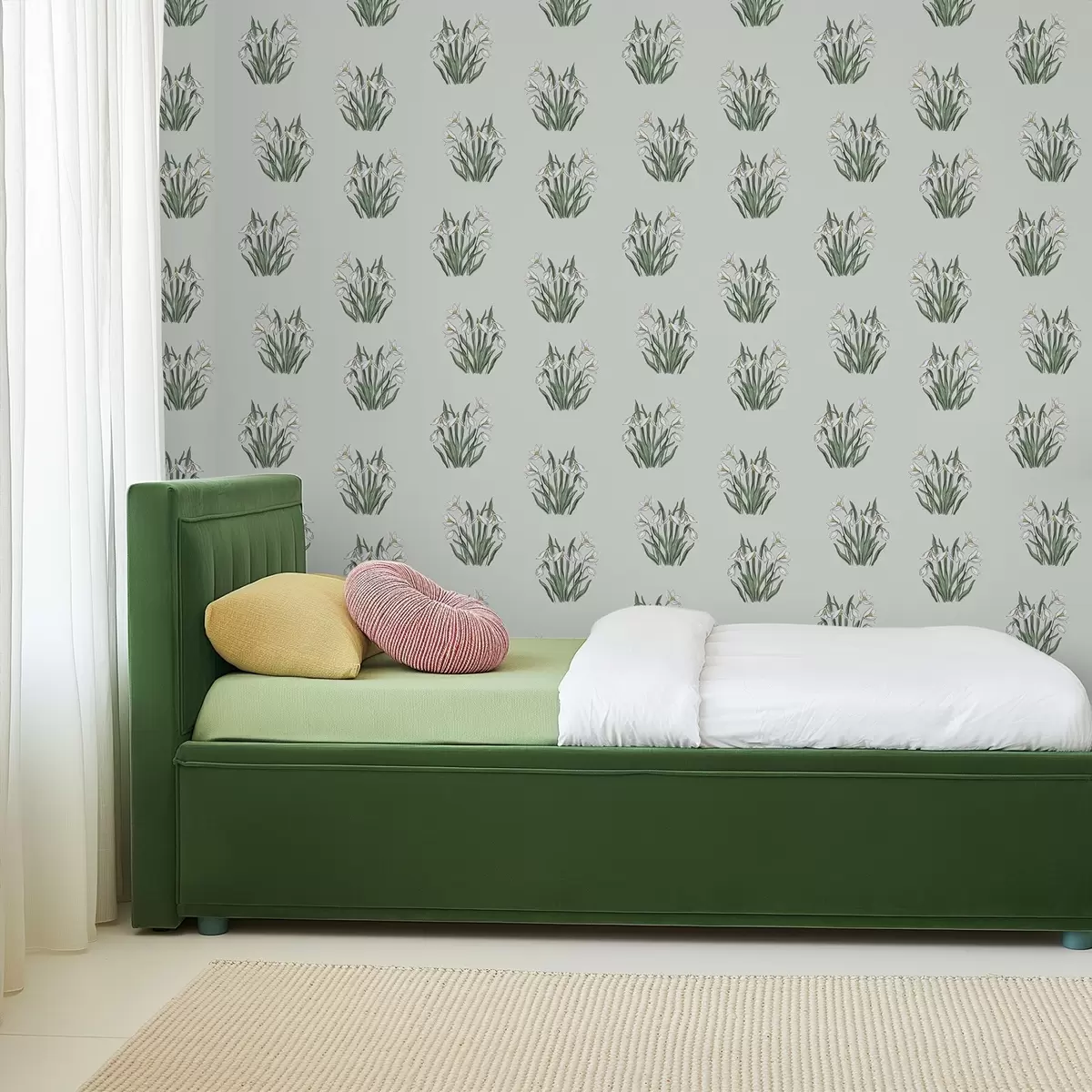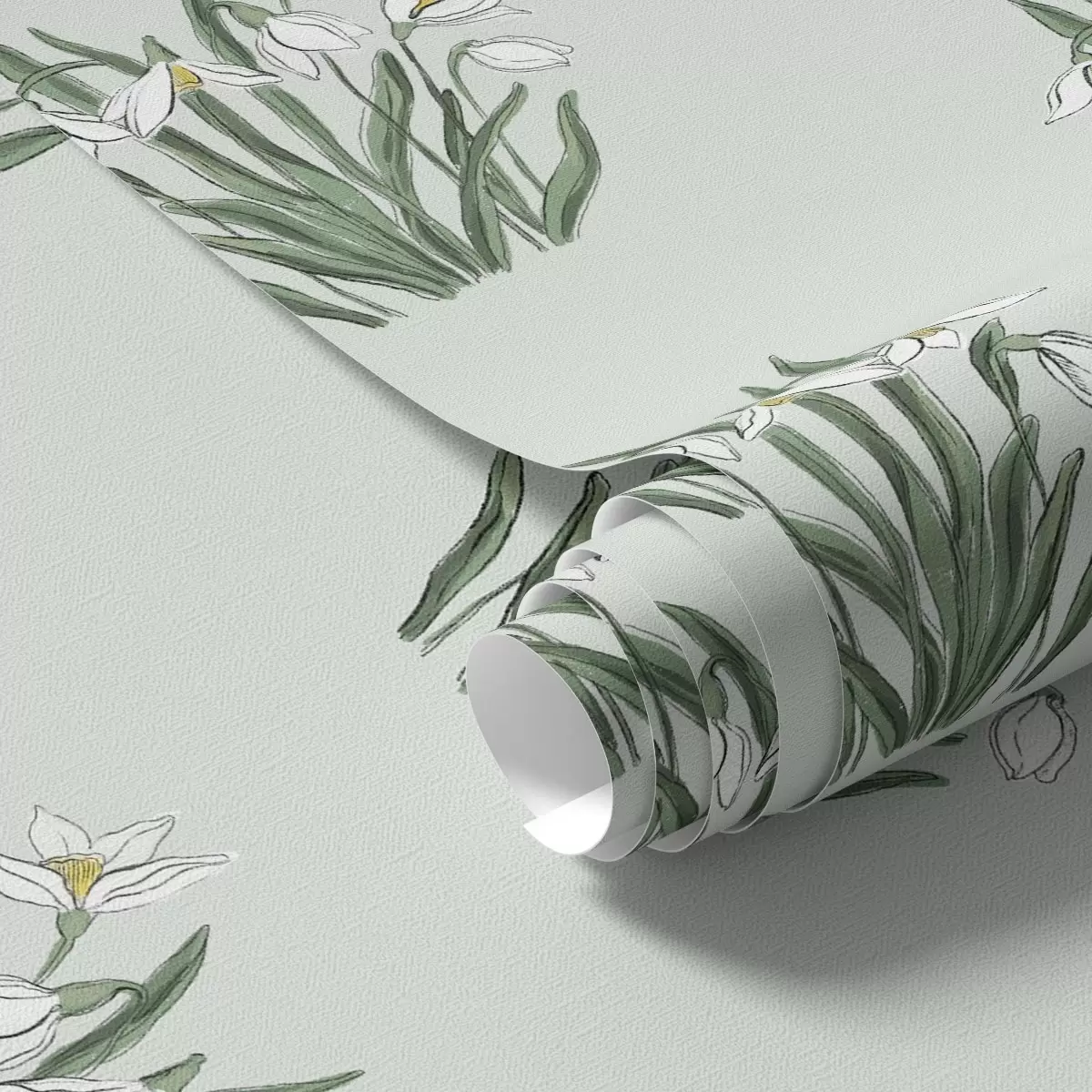 Ταπετσαρία Χιονάνθη με πράσινα φύλλα σε παστέλ πράσινο φόντο Nr. a00651