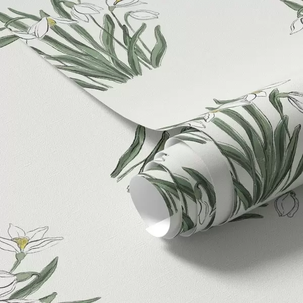 Ταπετσαρία Χιονάνθη με πράσινα φύλλα σε ανοιχτό γκρι φόντο Nr. a00651v1