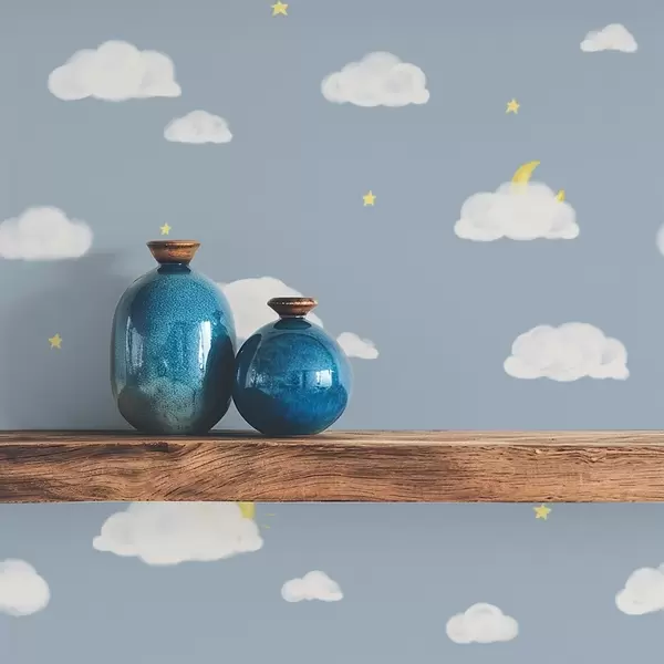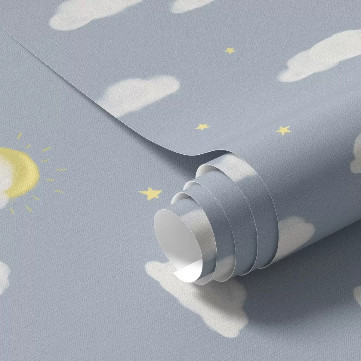 Ταπετσαρία Απαλά σύννεφα, αστέρια και ήλιος σε μπλε φόντο Nr. a00652
