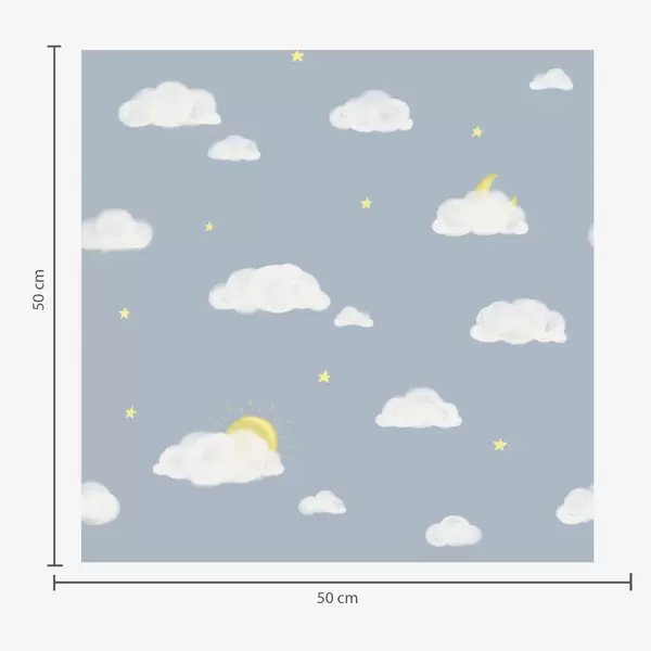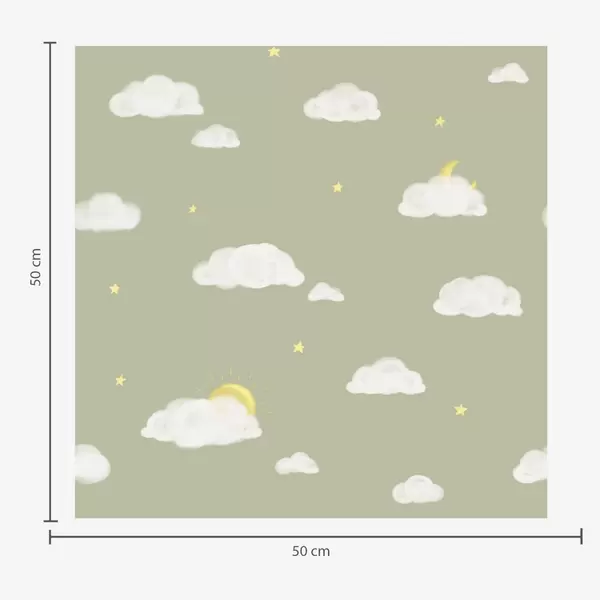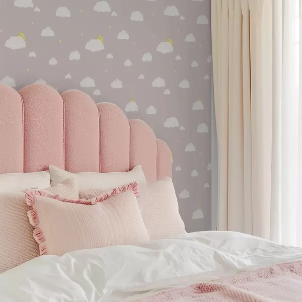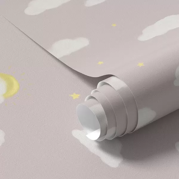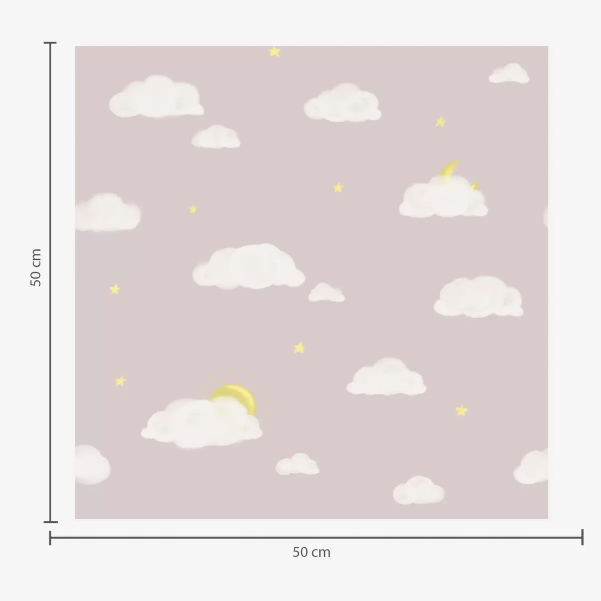 Ταπετσαρία Απαλά σύννεφα, αστέρια και ήλιος σε ροζ-γκρι φόντο Nr. a00652v2