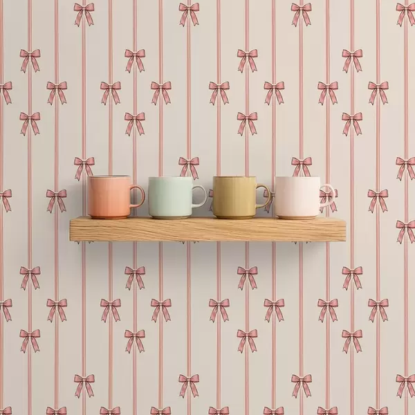 Ταπετσαρία Κάθετες κορδέλες με φιόγκους, φόντο ιβουάρ Nr. a00653