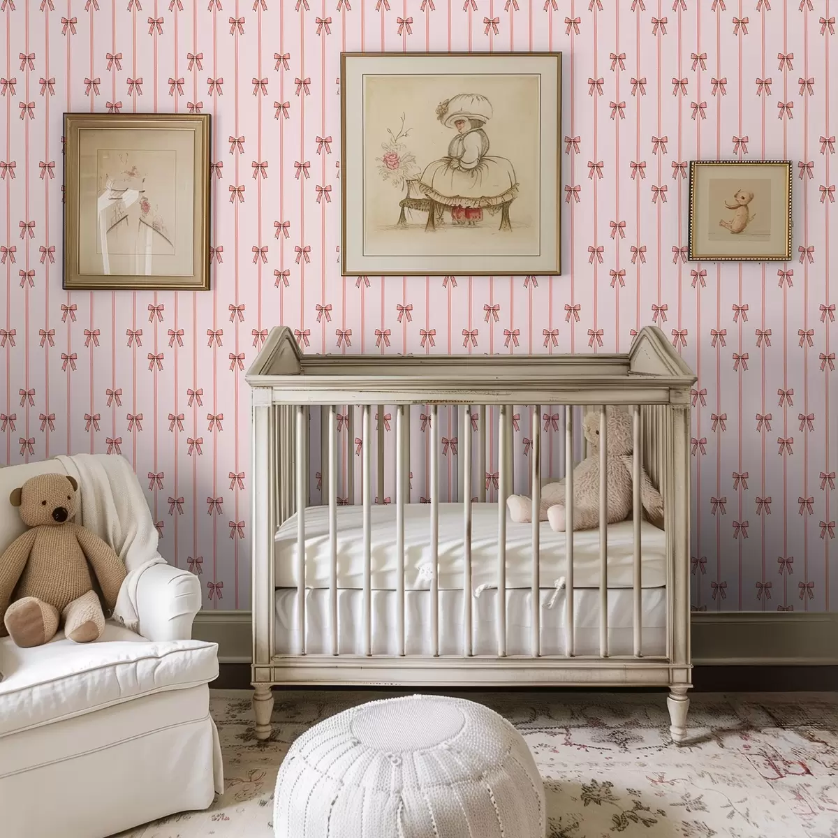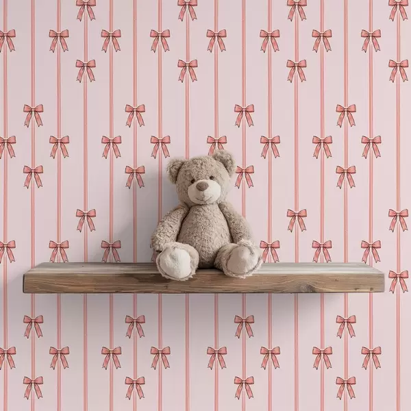 Ταπετσαρία Κάθετες κορδέλες με φιόγκους, φόντο σε ροζ χρώμα πούδρας Nr. a00653v2